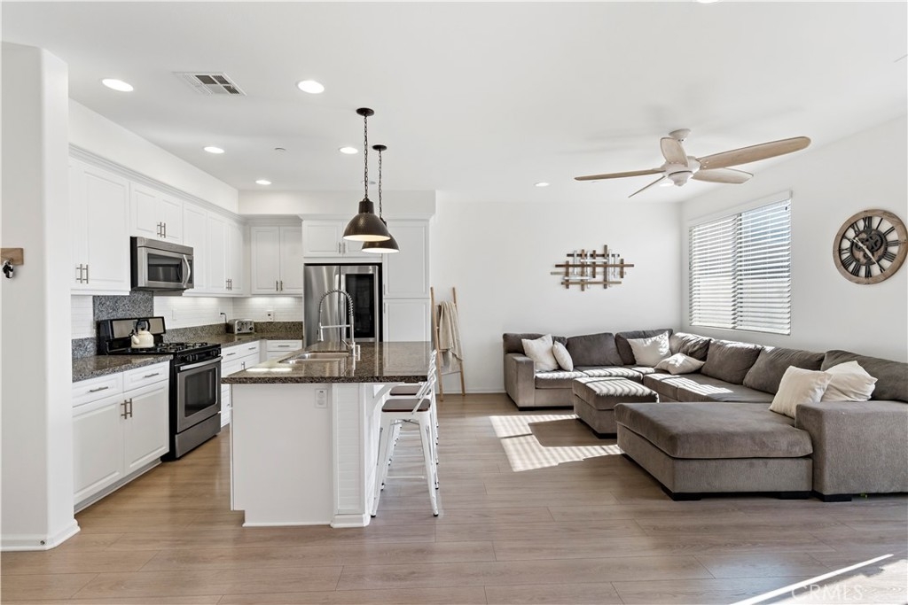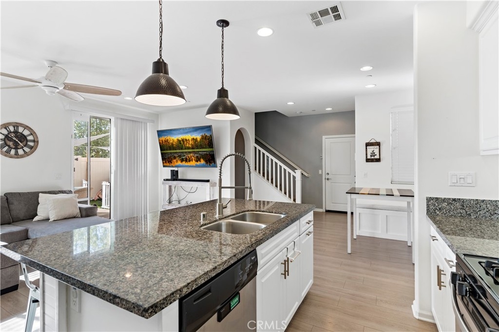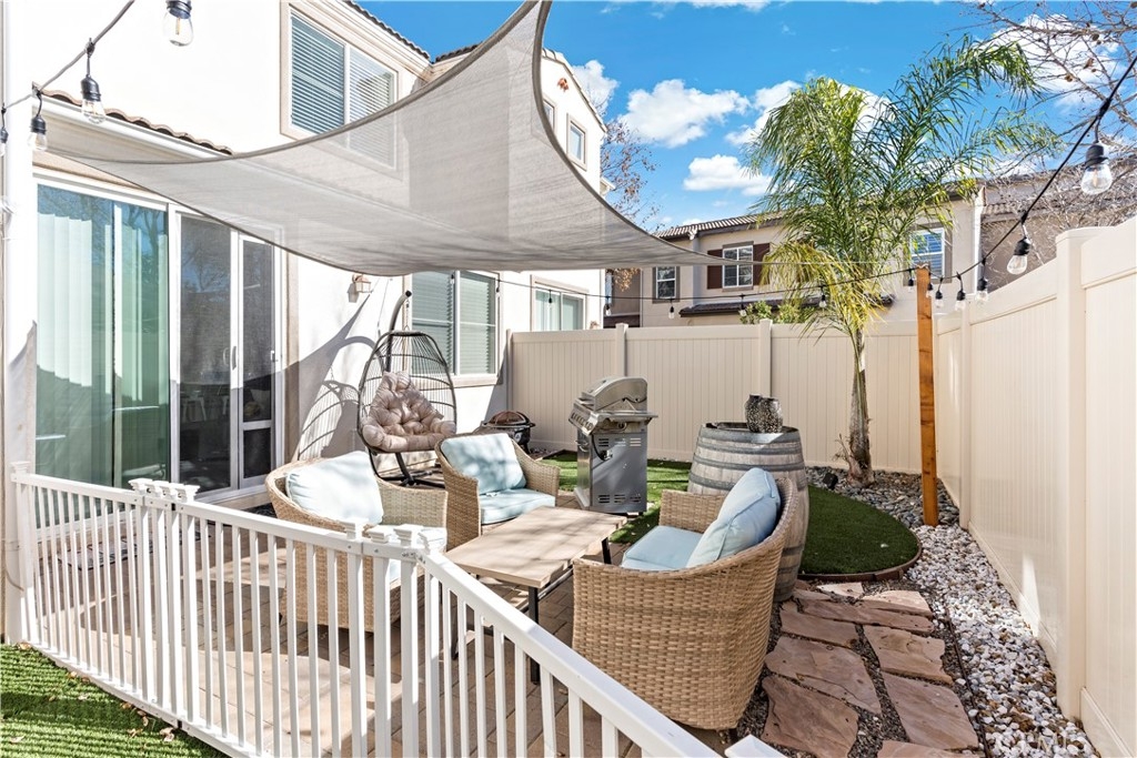 Welcome to this immaculately maintained home, located in the highly coveted Alegre community at Paseo del Sol in south Temecula. The entire property exudes the feeling of brand-new construction, with no detail overlooked. As you step inside, you'll be greeted by a stunning kitchen with upgraded cabinetry, granite countertops, a stylish backsplash, stainless steel appliances, deep basin sinks, and pendant lights that gracefully hang above the large kitchen island. The kitchen seamlessly opens up to a spacious family room, which boasts oversized sliding glass doors that lead out to a backyard with ample space and the newly added turf and decorative rock make for a beautiful area for entertaining. Whether you want to set up an outdoor seating area, a barbeque grill, or a fire pit, you won't run out of room! The backyard is extremely private, surrounded by upgraded vinyl fencing, and just a few steps away from the community pool and spa, which can be accessed through a gate located in a beautiful grassy area outside of the yard. The lower level of the house features a half bathroom and a large storage space located under the stairs. Upstairs, you'll find two bedrooms, two bathrooms, a loft, and a convenient laundry room. The loft area is spacious enough to easily convert to a third bedroom if desired. The primary bathroom is generously sized, with double sinks, ample vanity space, storage, a large walk-in shower, and a separate deep soaking tub. This picturesque community offers an array of amenities, including a large pool, a kiddie pool, a spa, and playgrounds. The location couldn't be more ideal, as you'll be within walking distance to stores, coffee shops, banks, and restaurants, and just a short drive away from wineries, the award-winning Pechanga Resort & Casino, and Old Town Temecula. This home truly has it all and is a must-see!