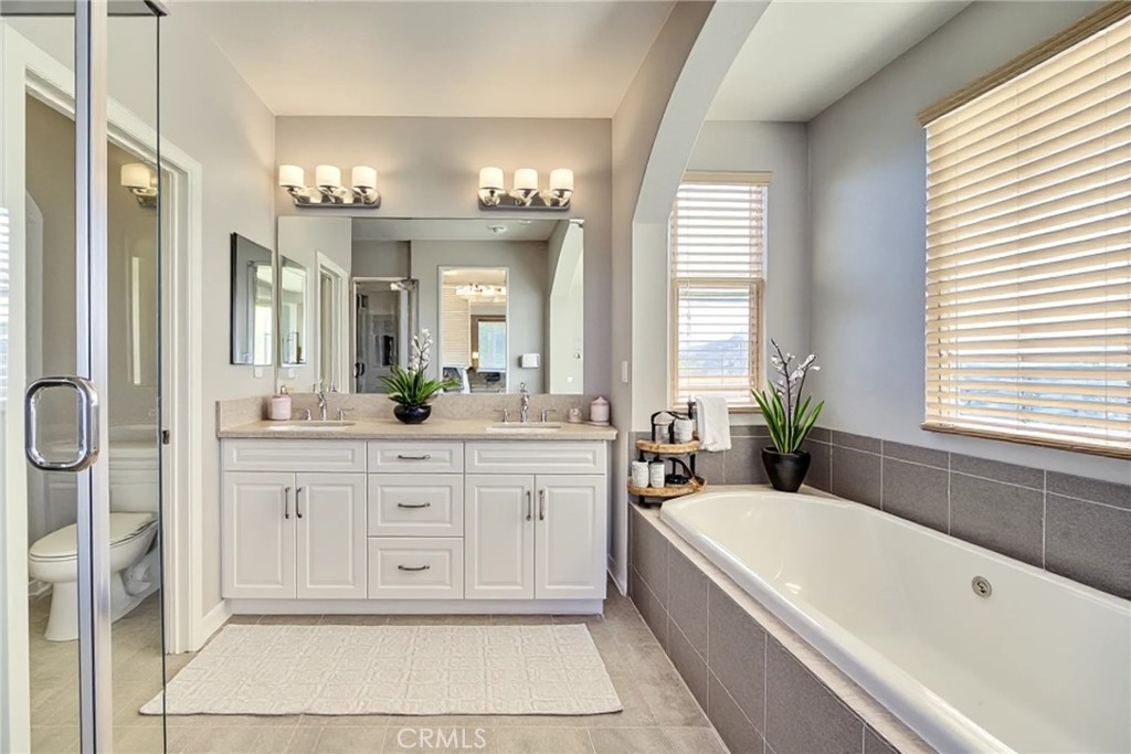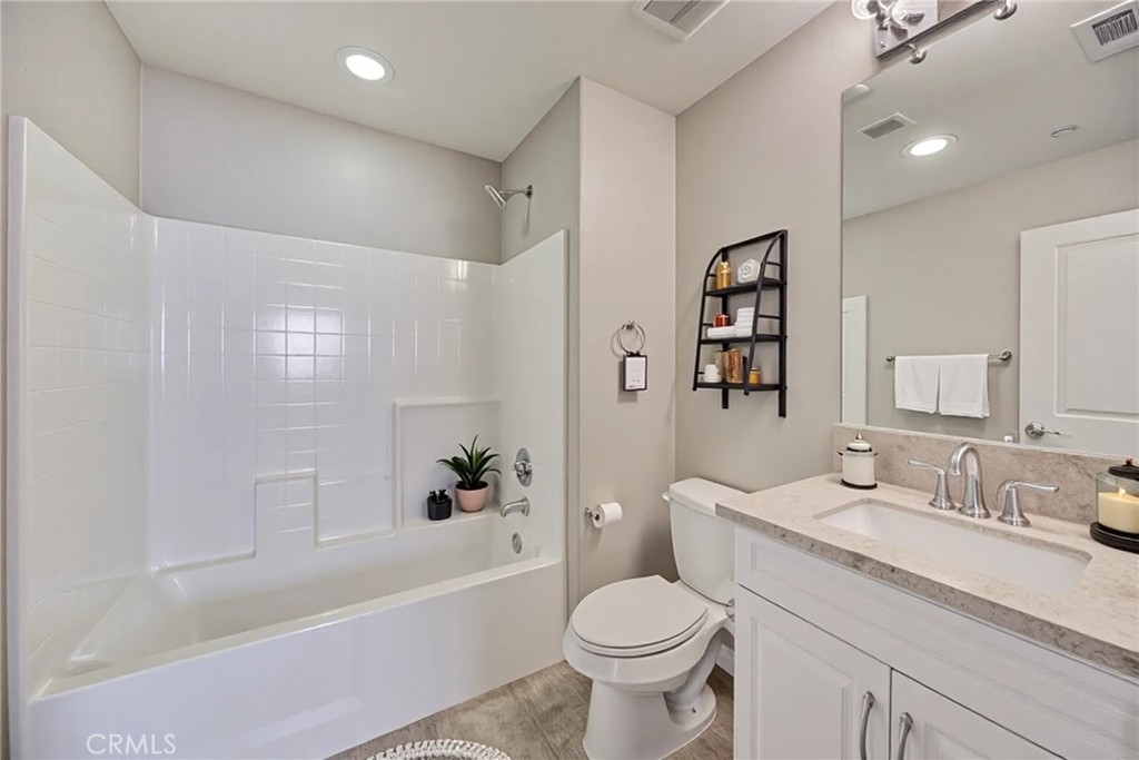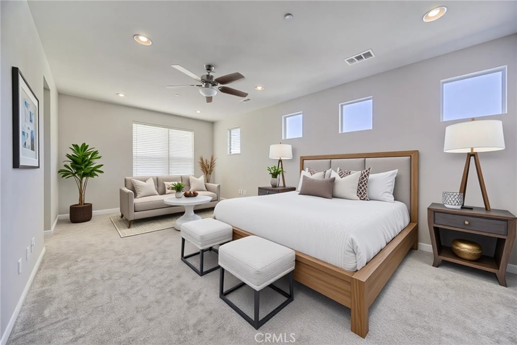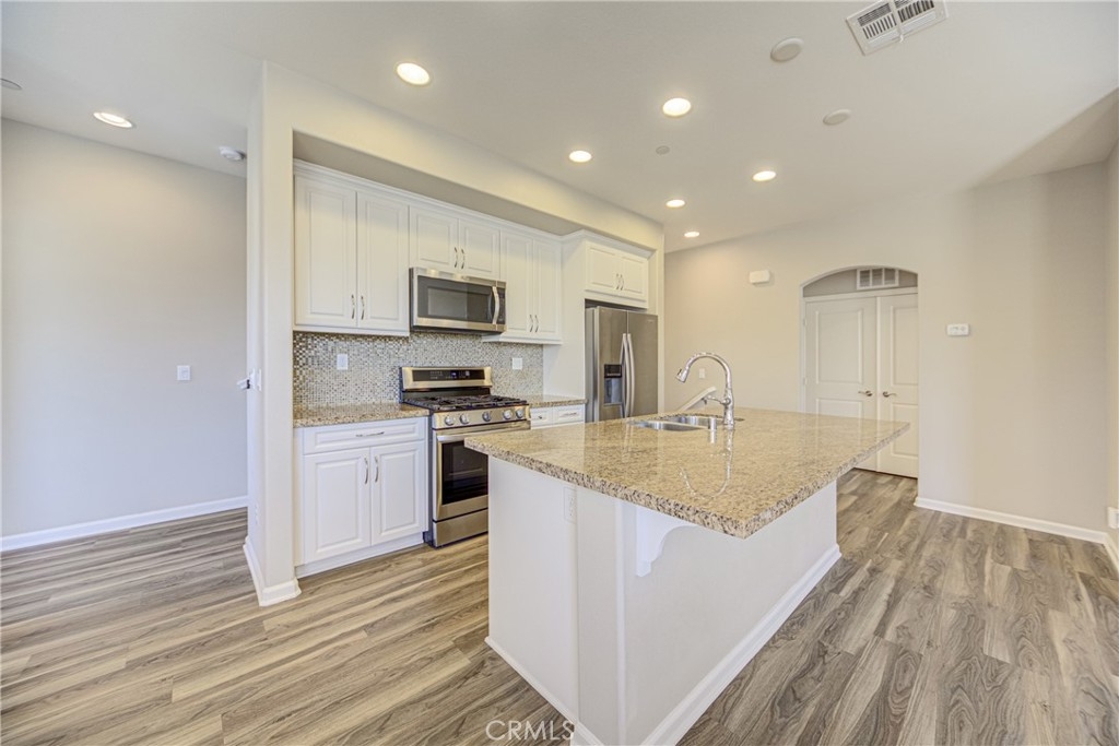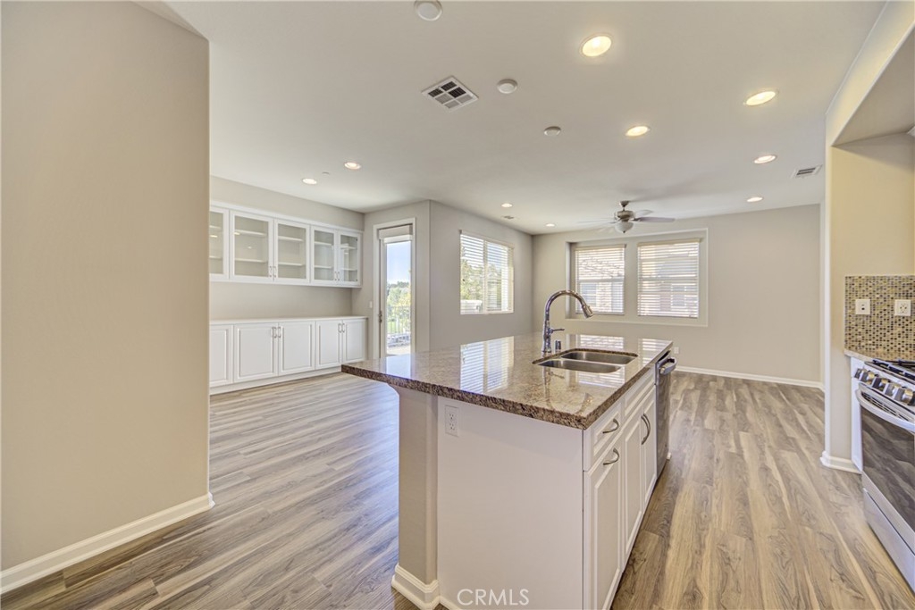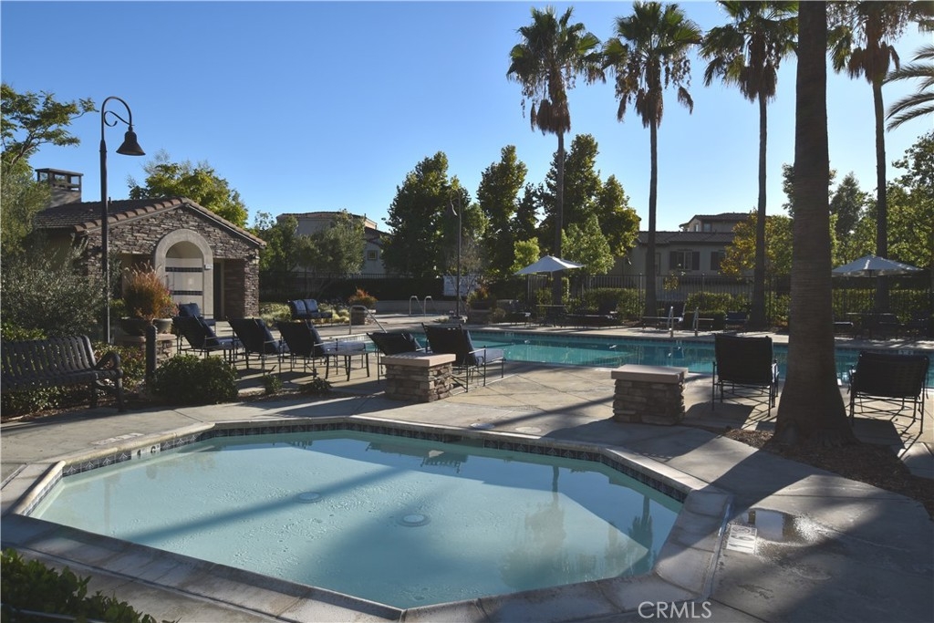 Luxury, High End Townhome conveniently located in South Temecula near shops and restaurants in the resort-like community of Alegre in Paseo del Sol. The living area showcases an open floor plan with high ceilings and carefully curated designer finishes. There is a huge kitchen equipped with beautiful granite countertops, stainless steel appliances and an eat-at island. The dining area features designer, white built-in cabinets and a french door out to the balcony, while the living room has plenty of windows for tons of natural light. This updated home has 3 bedrooms and three full bathrooms distributed over three floors with one per floor for privacy and convenience. The first floor bathroom has a tiled walk-in shower. The bedroom has a covered patio overlooking the park and pool. There is also easy access to the 2 car garage on that level. The main level features an open floor plan living area and a second bedroom with a full size bathroom, washer and dryer closet and a built-in office space desk. The third level has a massive master bedroom suite featuring a roomy walk-in closet, dual vanity bathroom with a separate bathtub and a walk-in shower. There is a tankless water heater and an extra storage niche in the garage as well as an outlet set up for install of 220 V for an electric car charger. The Community offers a huge pool, spa and kiddie pool with lush trees, and a green communal area. There are also play grounds, BBQ area, park, and trails. This home has low taxes home is minutes from wineries, Pechanga and Old Town Temecula and the freeway.
