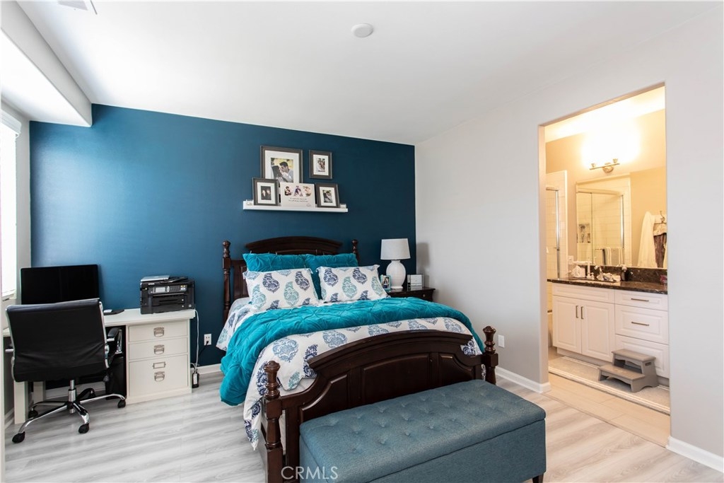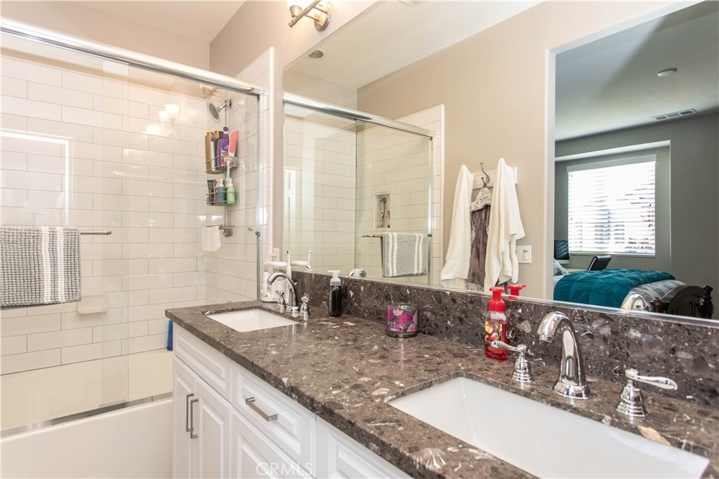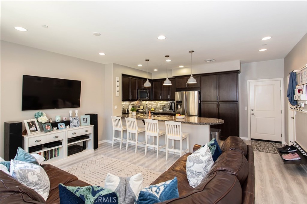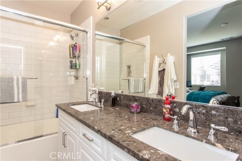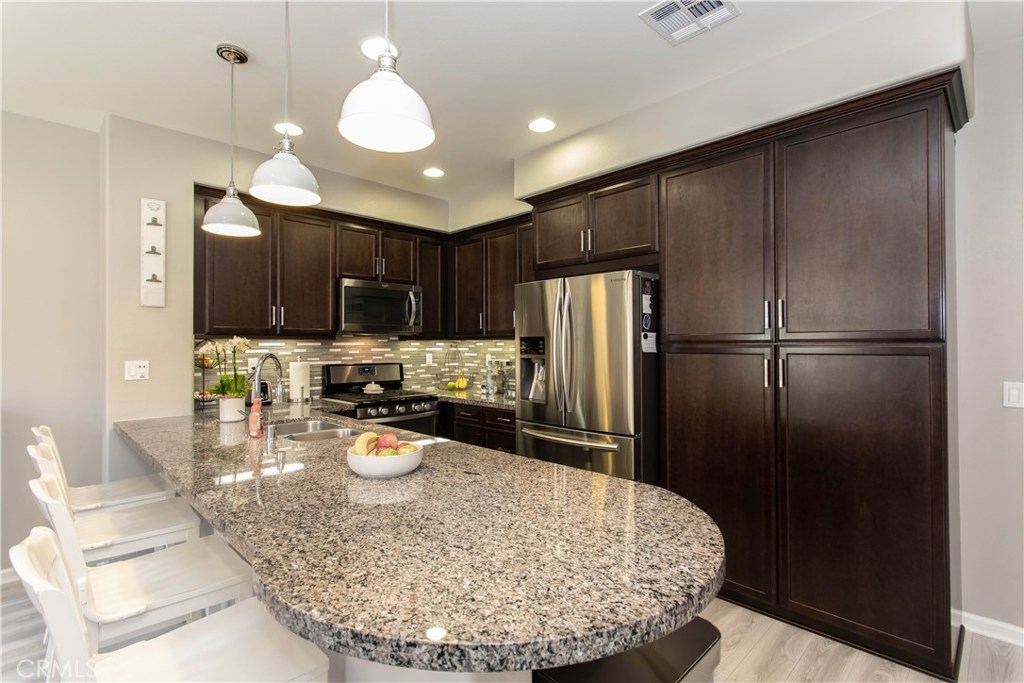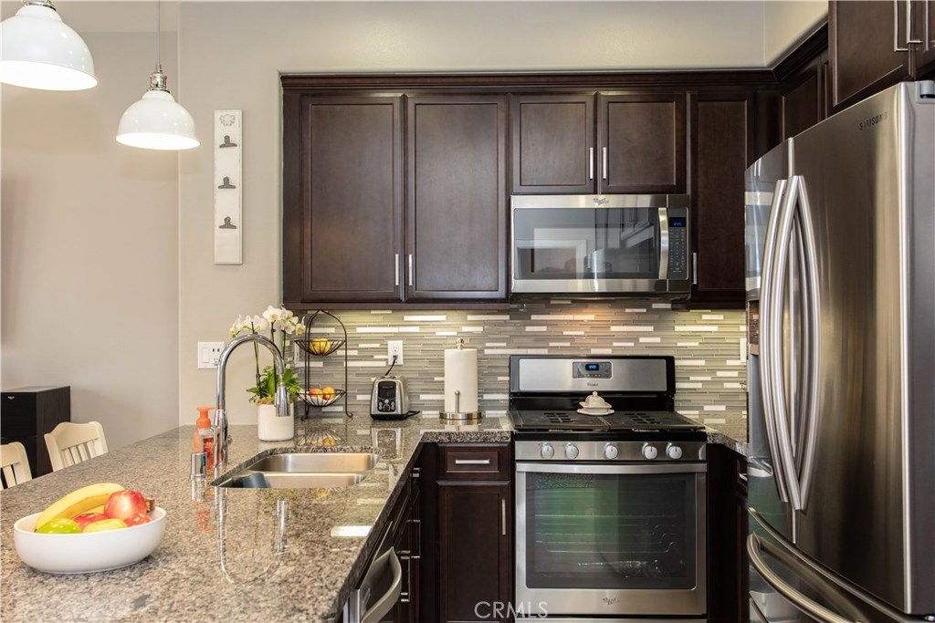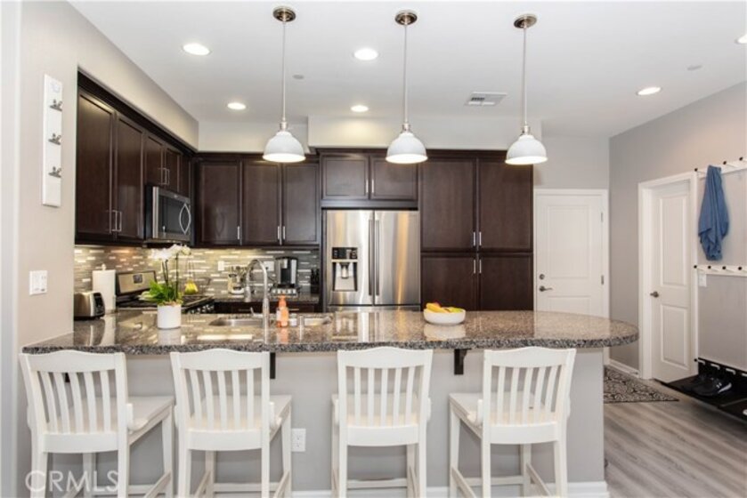 This upscale condo has it all! Thoughtful design, energy efficient appliances, large bedrooms, endless storage, a tankless water heater and a private front patio that is ultra low maintenance! As you walk in the front door you are greeted by a bright, open concept floor plan and stunning luxury laminate flooring. The kitchen has granite counters, an exquisite over sized island, and upgraded stainless steel appliances. The modern kitchen opens to the living room, perfect for entertaining! Heading into the garage, you will find plenty of storage, and epoxy floors. The luxury laminate continues throughout the home; go upstairs to find find hidden stackable washer & dryer, 3 bedrooms and a spacious guest bathroom featuring dual sinks and marble countertops. If you love extra storage, this is the home for you! The master suite has an upscale, spa like feel - complete with a gorgeous subway tile shower, upgraded vanity and a walk in closet. The master closet features a custom built in clothing storage system for easy organization. The Alegre / Aldea community offers wonderful amenities for residents, including a pool, spa, parks, walking trails and so much more!