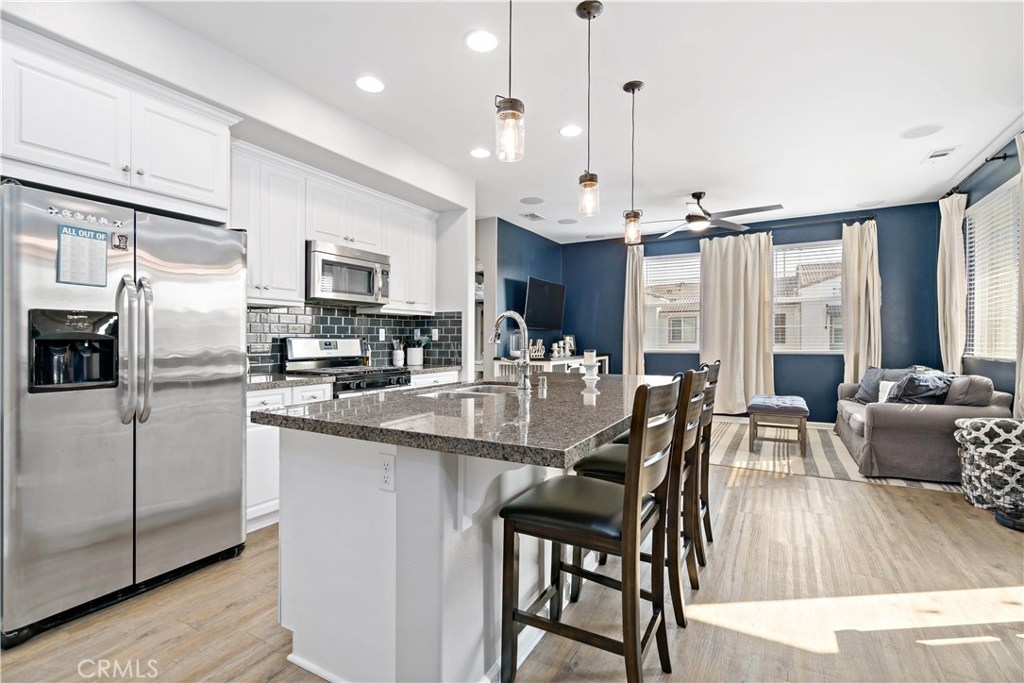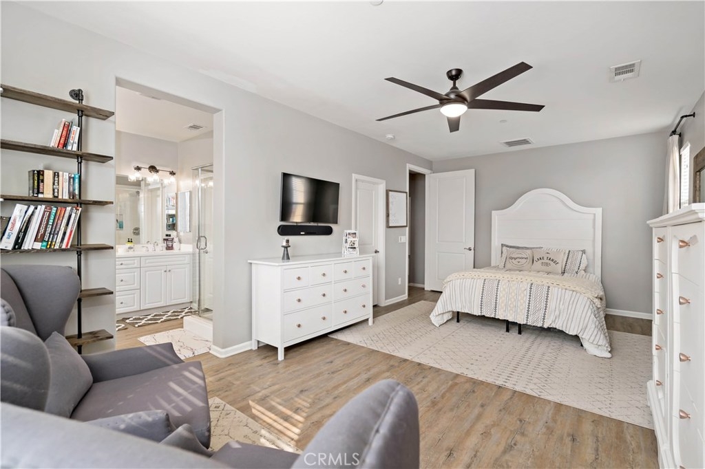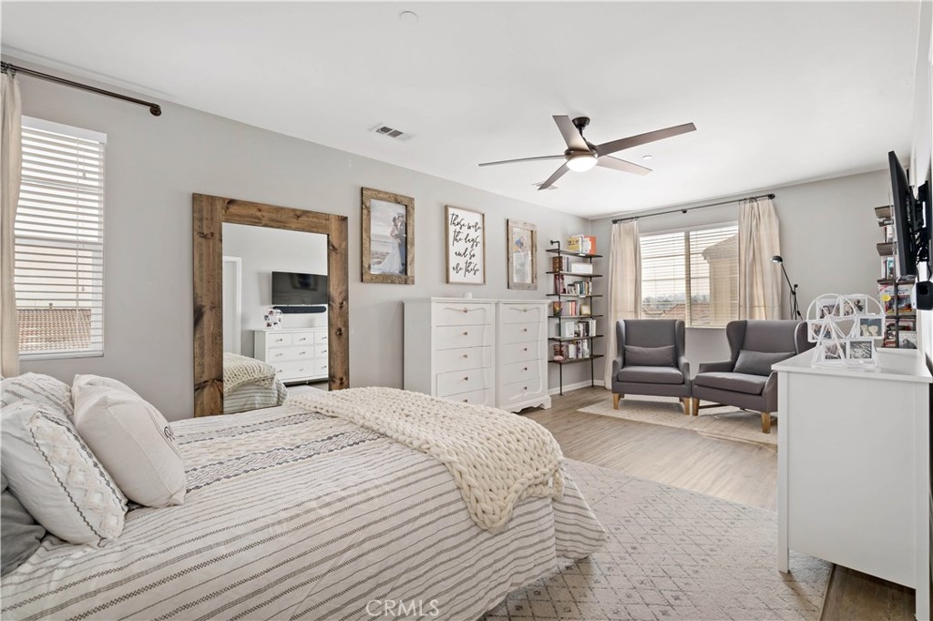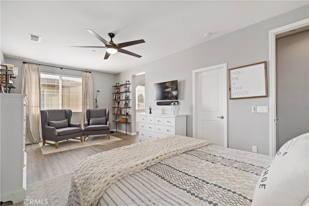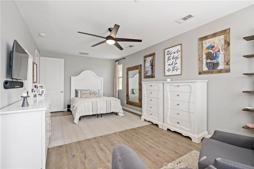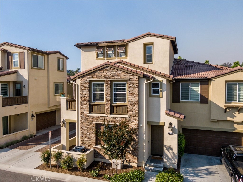 Welcome to Alegre! This rare 3 Bed, 3 full Bath model is highly upgraded & VA APPROVED. On the first floor is the 2 car Garage & En suite guest bedrm w/ patio & zoned HVAC. Up the stairs to main floor & you have another guest bedroom & bath, Kitchen & living area & a Balcony w/ seating area. The Master is on the 3rd flr & has sunset mountain views, a soaking tub, and Quartz counters. Upgrades include Vinyl Wood plank floors, Granite counters, Surround sound, Ceiling fans and upgraded paint. Low tax no MR! This perfect location is central to everything in Temecula, minutes from the freeway, shopping centers in walking distance and some of the greatest views from your private balcony.