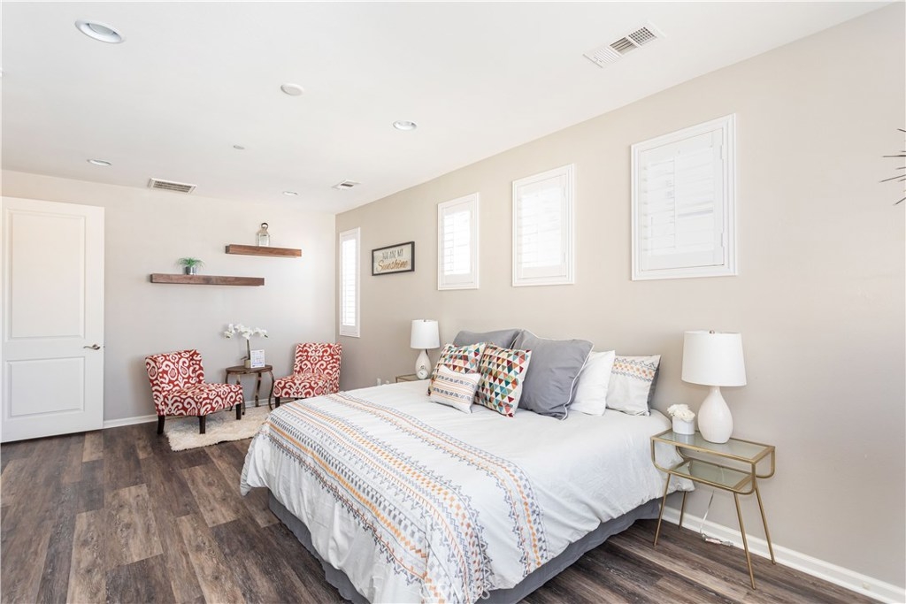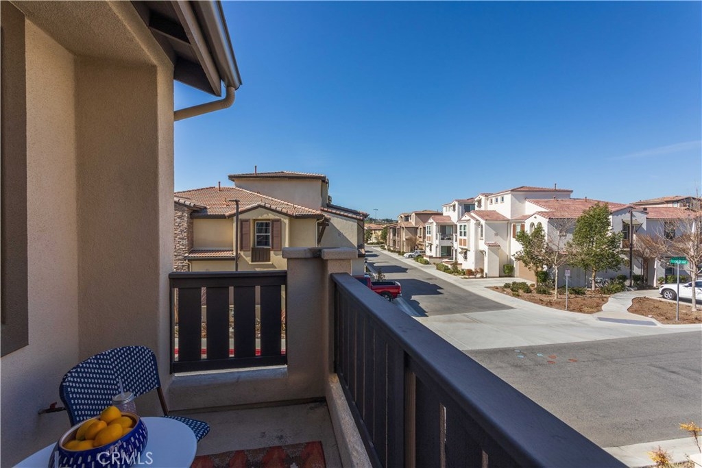From the moment you enter this stunning modern home you will be amazed at the immaculate condition, you might even mistake it for being brand new. Featuring a unique tri-level floor plan; there are spacious bedrooms and full bathrooms on both the first and second level. On the third floor you will find the master suite spanning the entire level. On the first floor, the bedroom with an en suite bathroom and features a private AC unit, and a private patio. The main level kitchen is appointed with a large granite island that has bar seating and pendant lighting, as well as stainless steel appliances. The kitchen flows to the dining nook and living room with plenty of room for entertaining. On the third level, the simply huge master bedroom features an oversized walk in closet and gorgeous bathroom. Enjoy mountain views while sitting on the breezy outdoor patios. This home was built in 2015 and also includes a two car attached garage. You won't find a better location! This home is close to all local shopping, wineries, freeways and is part of a top rated school district! Truly a turn key property in a LOW TAX area! Easy Temecula living starts now.