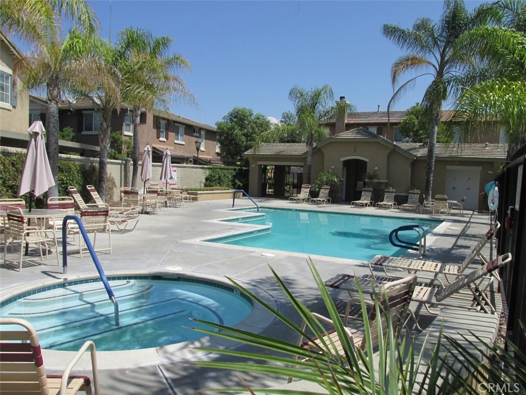 Lovely home in south Temecula gated community. 3 bedrooms, 2.5 bathrooms, plus bonus room. TILE FLOORS throughout the downstairs. Spacious kitchen with Stainless Steel Appliances. Kitchen opens to Dining Area and Family/Living Room with gas fireplace and media niche. Sliding door access to your own PRIVATE BACKYARD. No neighbors behind. ATTACHED TWO CAR GARAGE. Large laundry room with lots of cabinets and storage. Primary suite with walk in closet, dual sinks, and a soaking tub. Upstairs mini-office area with built-in desk. PLANTATION SHUTTERS THROUGHOUT. HOA Amenities of Pool, Spa, tot lot. PLEASE CLICK ON THE VIRTUAL TOUR BUTTONS FOR MULTIPLE PHOTOS. Make this your new home today! Won't last long.