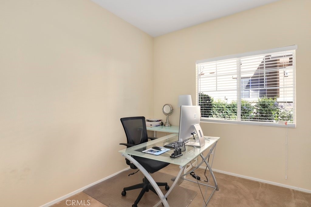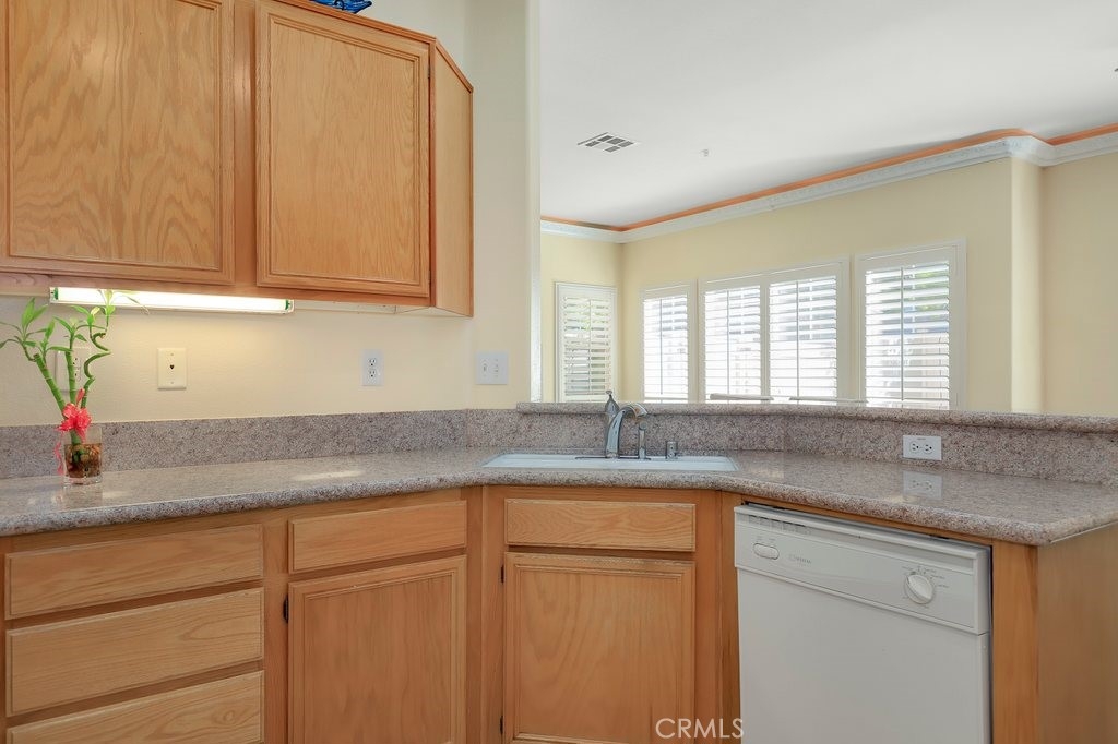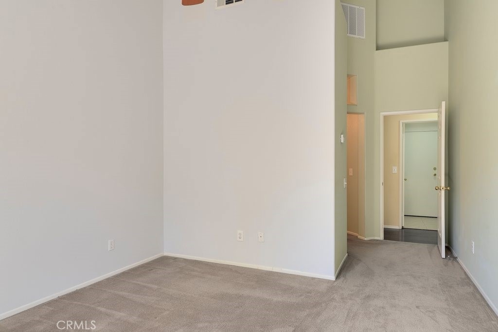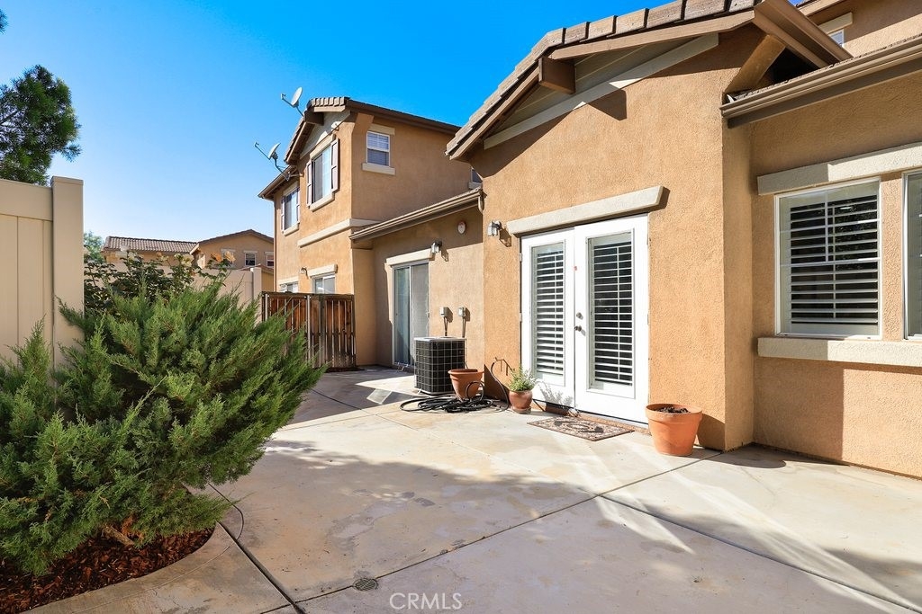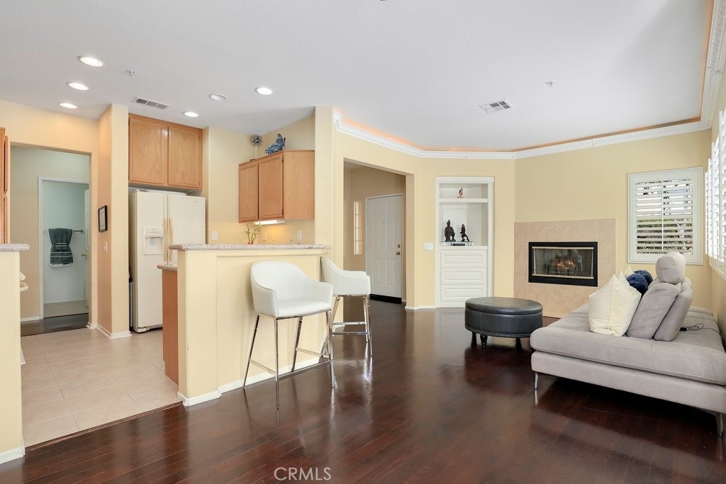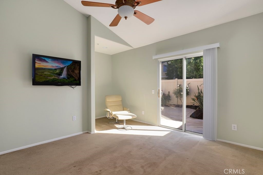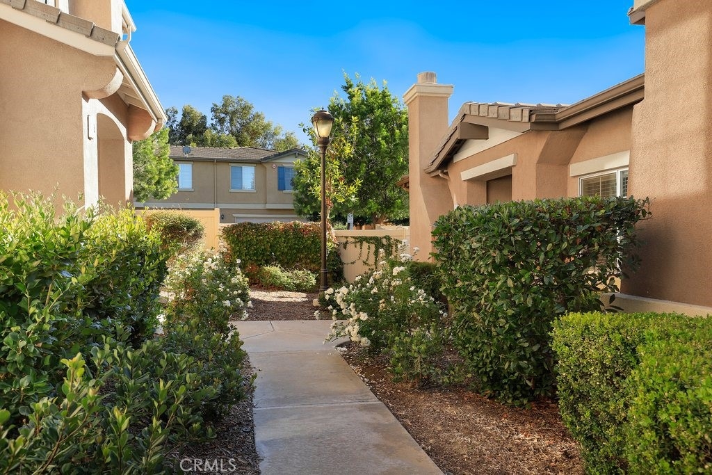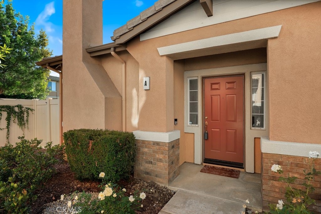 Move-in ready townhouse in the desirable Auberry Place community features a spacious floorplan, custom paint scheme, recessed lighting, plantation shutters, crown molding, and gorgeous hardwood flooring throughout the main living areas! The living room offers tons of natural light and a fireplace. The kitchen sits just off of the living room and has wood cabinetry with lots of storage space and granite countertops. There is also a dining area with a ceiling fan off of the kitchen and living room. There are 2 bedrooms on the first floor including the huge primary suite with vaulted ceiling, a private slider to the backyard, and a large ensuite with a walk-in closet, dual sink vanity, and a soaking tub with shower. The 2nd bedroom is located on the opposite side of the home, and there is also a full-size hall bathroom, and a laundry room with extra storage space, and garage access. This home also has a large bonus loft area or 3rd bedroom option on the 2nd floor with a ceiling fan and a walk-in closet. Enjoy the large private backyard with beautiful roses, this space is ready to be made yours and is perfect for entertaining guests! Residents of this community get to enjoy a sparkling swimming pool, and spa! This home is conveniently located near schools, shopping, dining, and more!