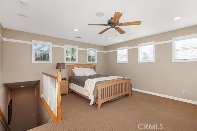 Beautifully updated two bedroom, two bathroom condo with large private patio in gated community of Auberry Place. Light bright open floor plan. Private master bedroom with two walk-in closets, including large walk-in and newly remodeled bathroom. Second bedroom and updated bathroom on first floor. Second floor loft with custom built-ins and walk-in closet. Loft can be a bedroom, office, or extra living space. New wood laminate flooring and fresh paint. Conveniently located next to the pool and the main gate. Its like having your own pool without the maintenance. Please come by and see your new home.