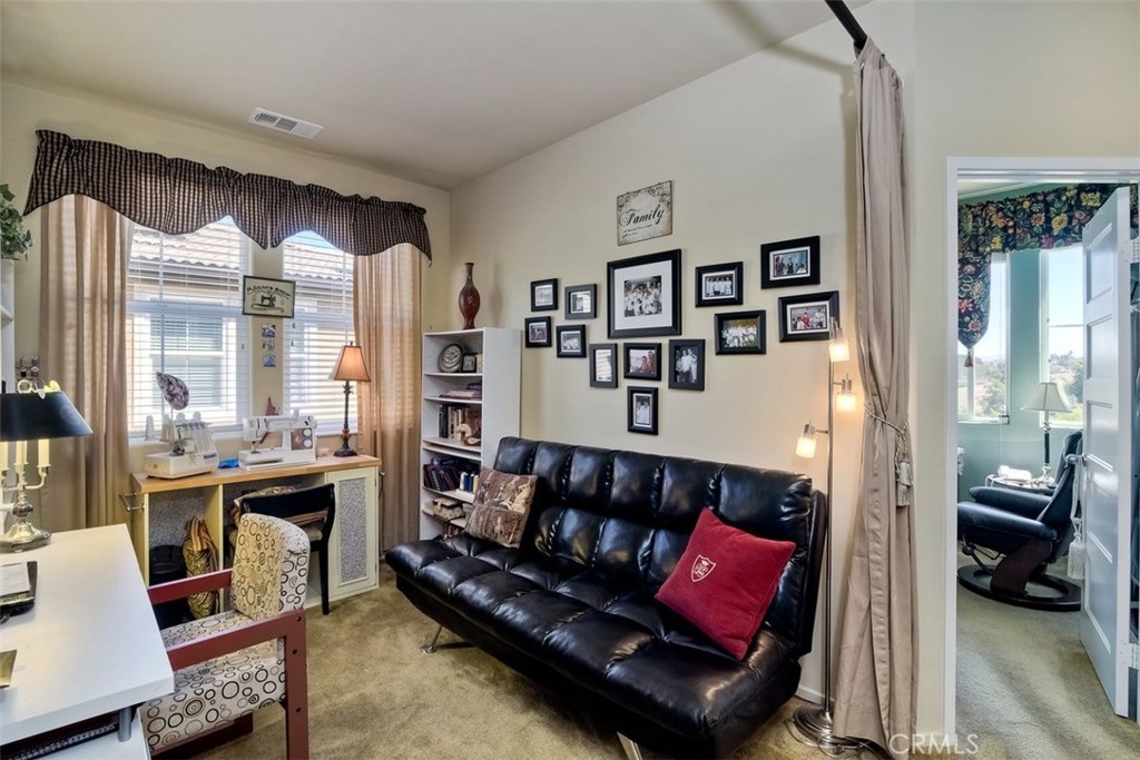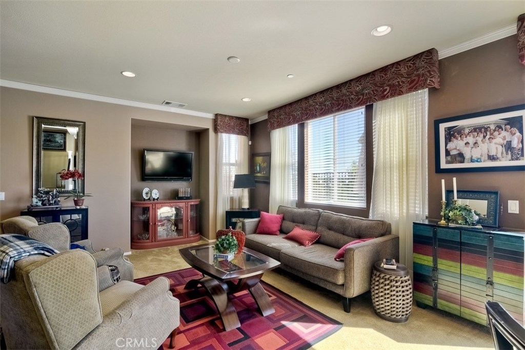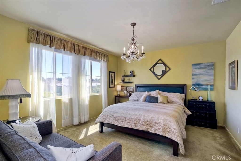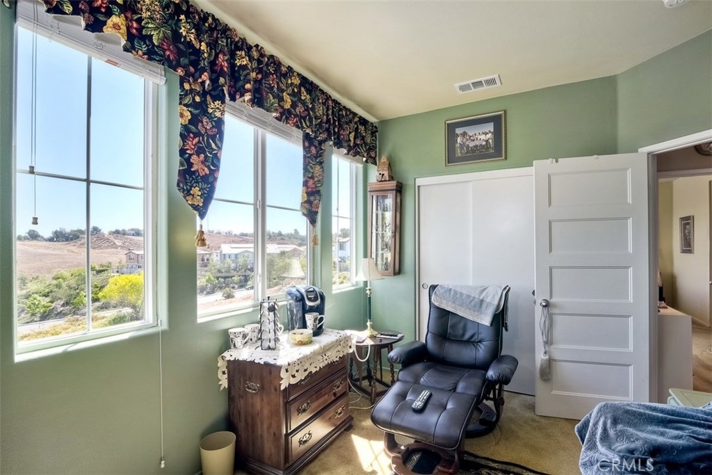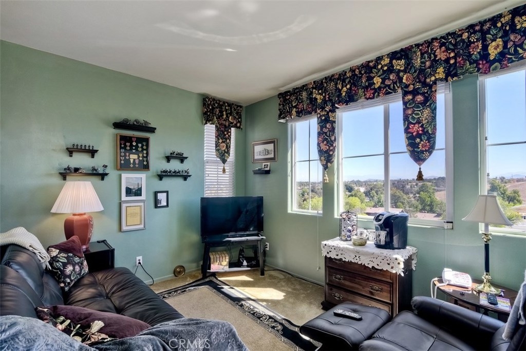 LOW TAXES AND NO MELLO-ROOS! Pride of ownership! Highly desirable BelVista Plan 3. Perimeter view location. No back yard neighbor with mountain views. Rear of home is east facing, providing morning sun on the patio, in the kitchen and family room. Adjoining walls are constructed with a 4" air gap separation with a double layer of drywall on each living space side. This provides nearly sound-proof living. It's orientation such that you hear little traffic outside. Dark granite kitchen counters w/ full-height subway back splash and white cabinets. Upgrades include pull-out shelves in lower kitchen cabinets, crown moulding, custom paint and draperies & open stair rail system. Builder pre-paid 20-year solar lease. Huge energy savings with no solar payments. You'll only pay low, low usage cost. Tankless water heater, radiant barrier roof sheathing, and Low-E dual glazed windows add to the utility savings. Resort-style living with pool, spa, parks, barbecue grills and covered picnic areas. Temecula schools are top notch and the elementary school is being renovated. You'll enjoy the close proximity to restaurants, Temecula's famous wineries, numerous golf courses, and the Promenade mall. This is the largest plan in the community. It is 1,739 square feet, 3 bedrooms, 2 1/2 baths, PLUS downstairs den and a loft upstairs. Empty-nesters, young professionals, and families all love Bel Vista. It was the fastest selling community in Riverside County when it was build just five years ago!