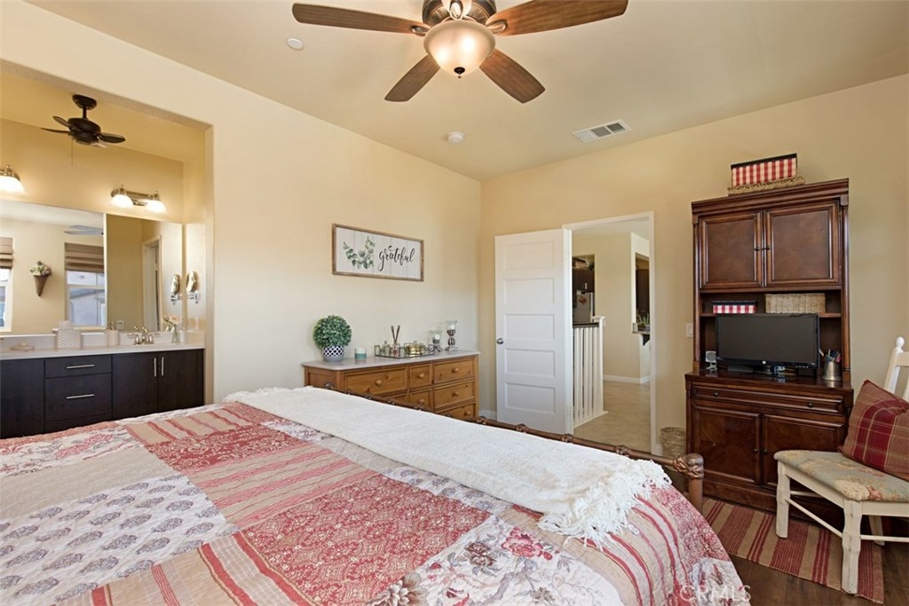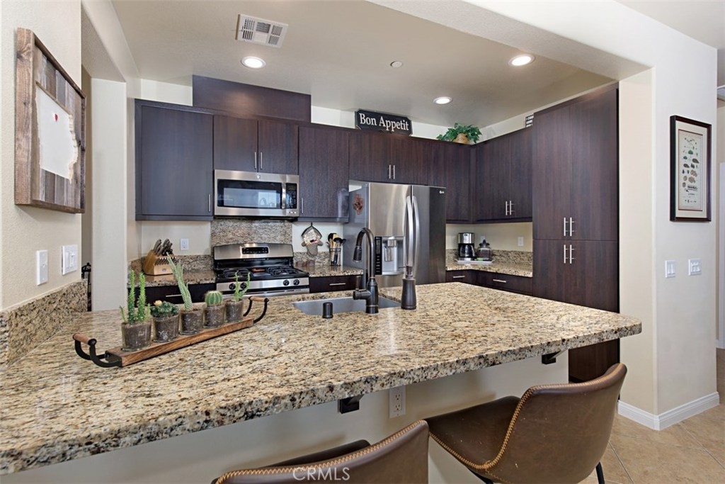 Welcome home to the highly sought after Belvista Community!! This stunning corner unit, 2 bedroom 2 bathroom Temecula condo is everything you have been searching for!Enjoy beautifully upgraded flooring and modern espresso cabinetry throughout. This gorgeous open floor, second story unit has all living space upstairs with no neighbors beneath, beautiful wood-plank laminate flooring in the bedrooms and stairs and upgraded tile flooring in the main areas. The kitchen boasts stainless steel appliances and an oversized kitchen island. There are upgraded raised panel doors throughout, ceiling fans, recessed lighting, dual vanity sinks with glass shower enclosure in master with walk in closet and attic access for tons of extra storage. Energy efficient features like the tankless water heater and builder PAID SOLAR lease as well as professional epoxied garage flooring. Enjoy the quaint balcony that has peek a boo views of mountains. Located near the 15 freeway and everything Temecula has to offer. THIS HOME WONT LAST!! Come see this little gem before it's gone!