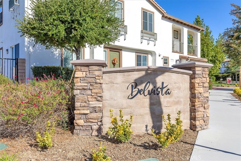 Highly desirable BELVISTA Plan 3 home. LOW TAXES and NO MELLO-ROOS. 1,739 square foot with open floor plan featuring 3 bedrooms, a downstairs den/office (currently being used for formal dining), an upstairs loft and 2.5 bathrooms. This unit feels like a single family home with private back patio and no side neighbor to your right. This location is a prime corner lot with beautiful views. You will not find another location like this within the community. Featuring oversized custom tile throughout the lower level and upstairs bathrooms and upgraded carpet everywhere else. Beautiful granite countertops with custom backsplash in the kitchen and gorgeous upgraded cabinetry throughout. This home also features crown moulding. Builder pre-paid the solar lease for 20 years at buildout so there is no lease payment due each month for the new homeowner. Only pay your usage!! Plus.. the tankless water heater, radiant barrier roof sheathing, and Low-E dual glazed windows help keep the utility bills incredibly low. Resort-style living in the heart of Temecula, dog friendly community with pool, spa, tot-lot, barbecue and picnic areas. Property is close to top-rated schools, parks, restaurants, Temecula's wine country, several golf courses, Old Town Temecula, Pechanga Resort and Casino, and the Promenade Mall. A commuters dream as it is located less than a minute from the I-15 freeway. Time to call BELVISTA Home!