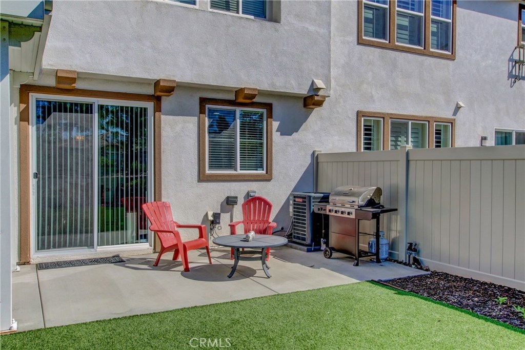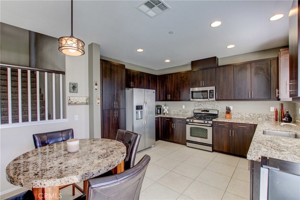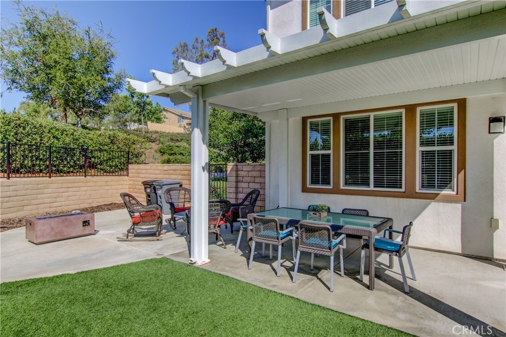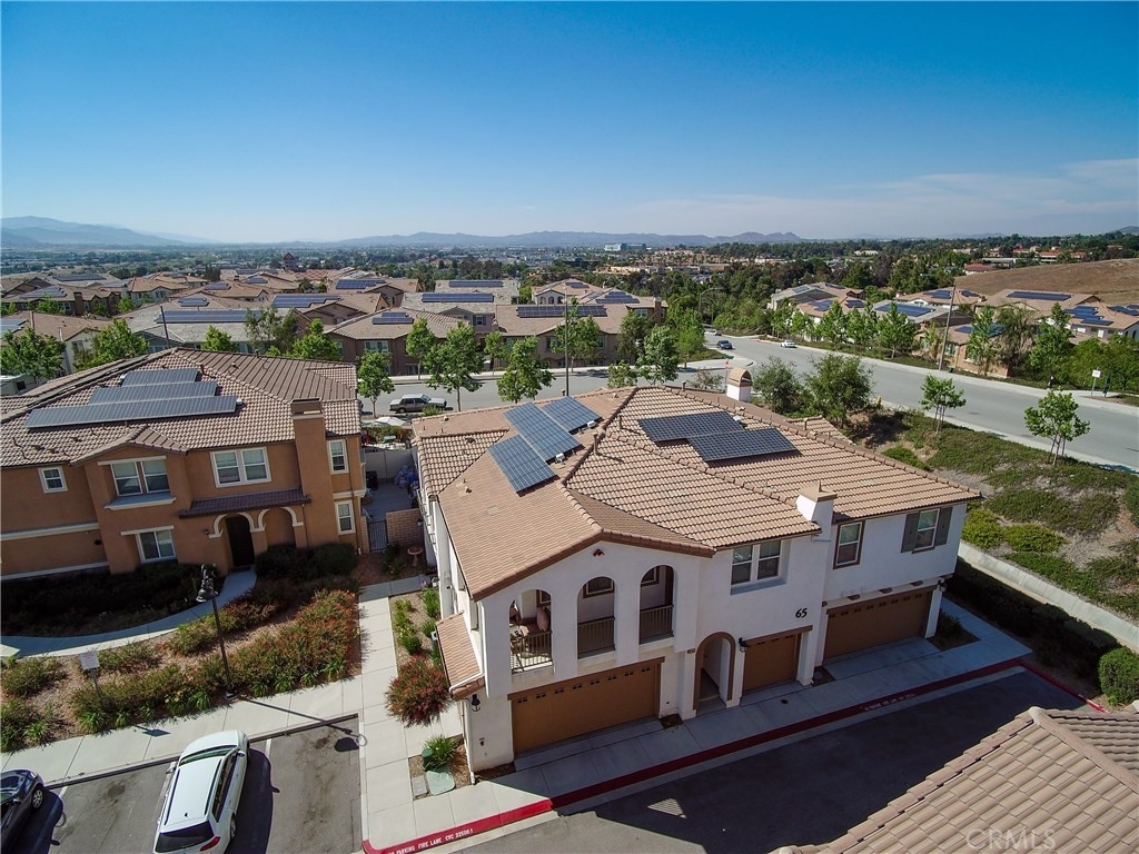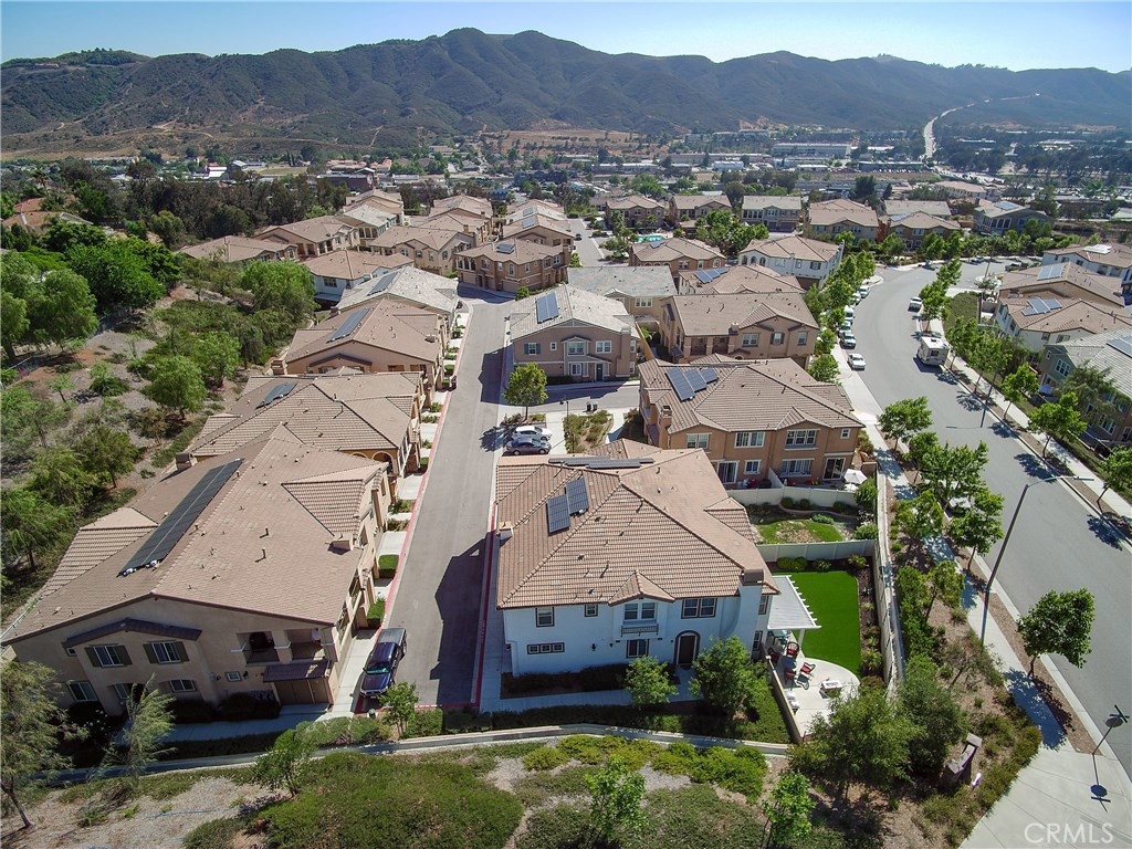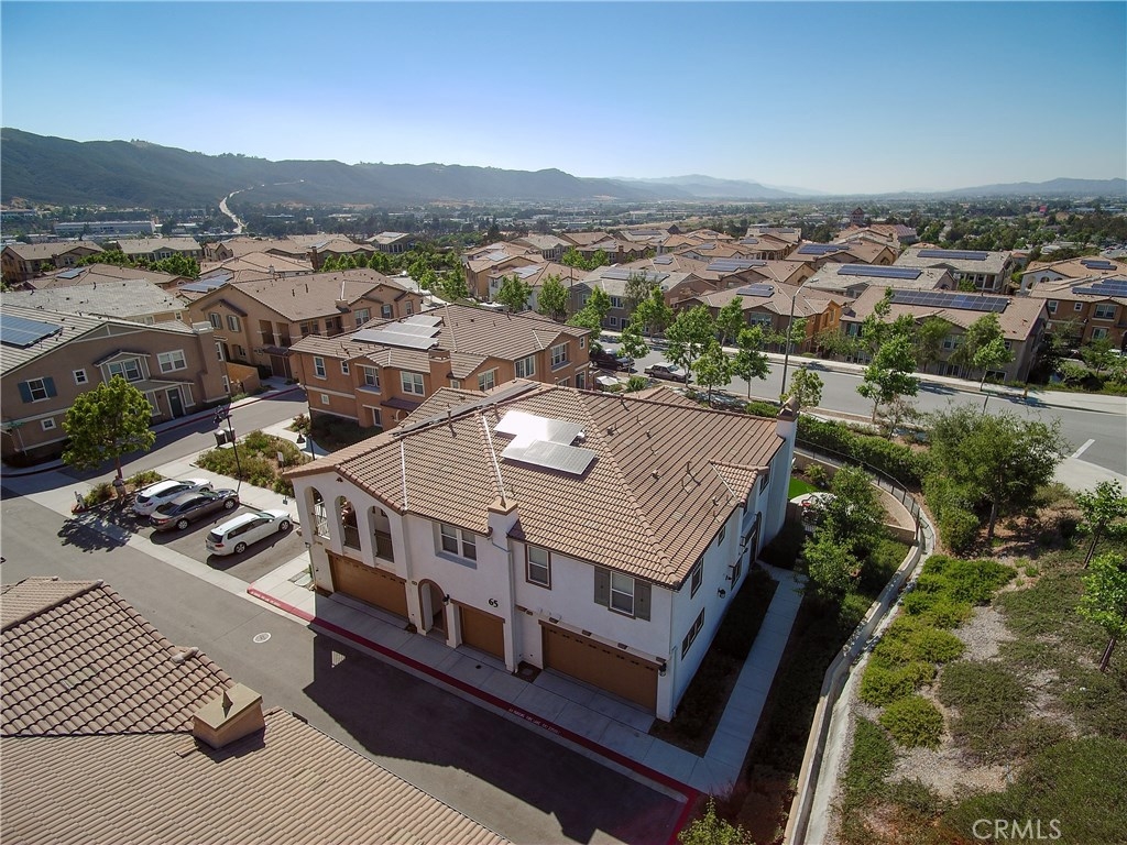 This beautiful and spacious end-unit with open floor plan offers one of the largest lots in the highly desireable community of Belvista. With 3 Bedrooms plus Loft plus Den, and 3 Bathrooms, this is also the largest model in the complex. 18” tile flooring, dark hardwood laminate, and newer plush carpeting throughout complements the open floorplan. Your spacious Kitchen has stainless steel appliances and sink, granite counters and ample dark cabinets. Great Room, Dining Area, Den, Half-Bath, and Laundry Room complete the Downstairs; Upstairs is large Master Suite with huge walk-in closet, two secondary Bedrooms, a Loft, storage in hallway, and Full Bath. The exterior of home has alumawood patio cover, large patio hardscape area and water-saving lush artificial turf, surrounded by block wall and vinyl fencing for a private backyard. Attached 2-car Garage with built-in full length storage cabinets, tankless water heater, whole house solar paid by Builder add to the energy efficiency of the home. The community includes pool/spa, playground and picnic area. Great location close to popular Temecula Old Town and Wineries, this home is another that will not disappoint! All furniture is available for purchase as well.