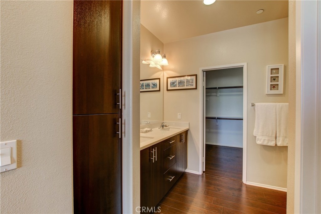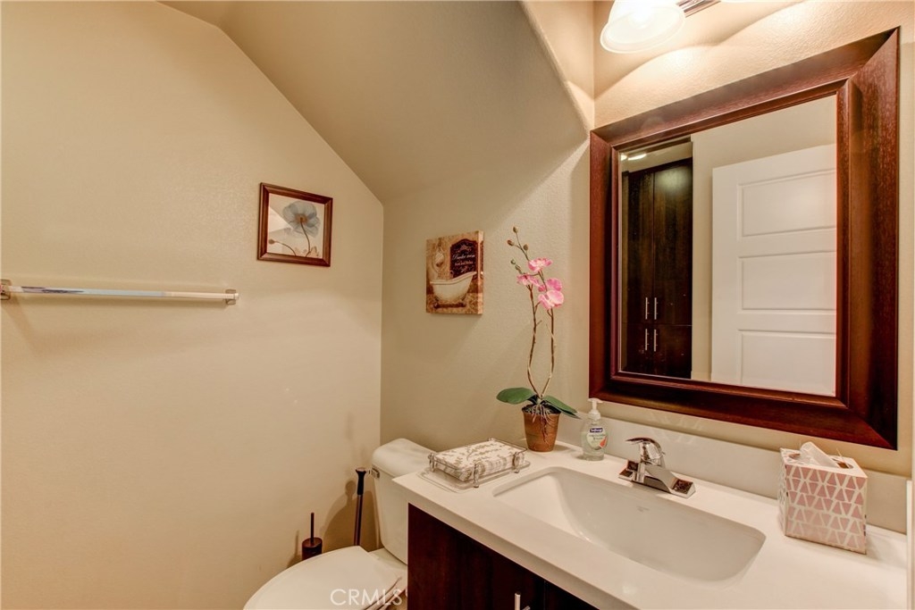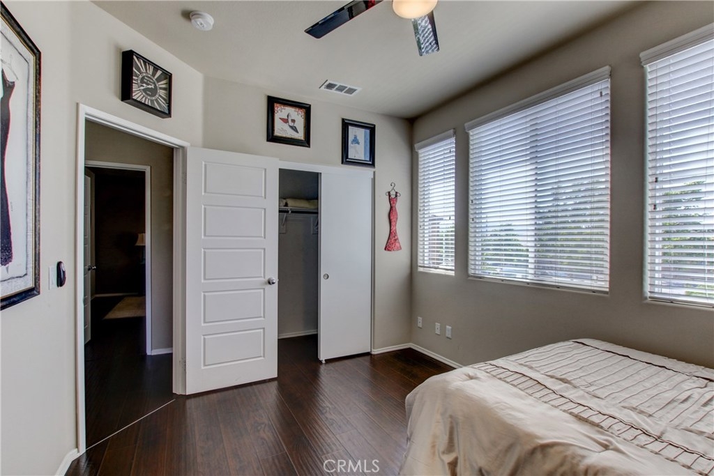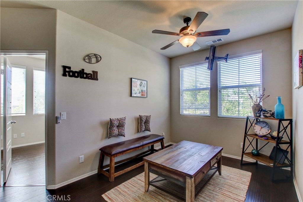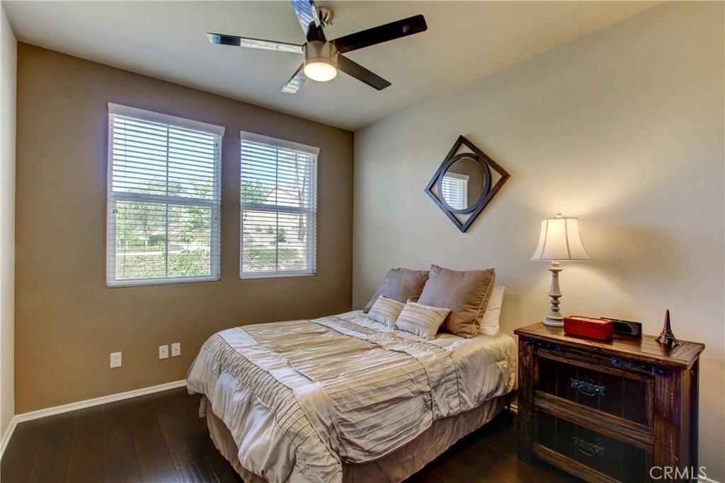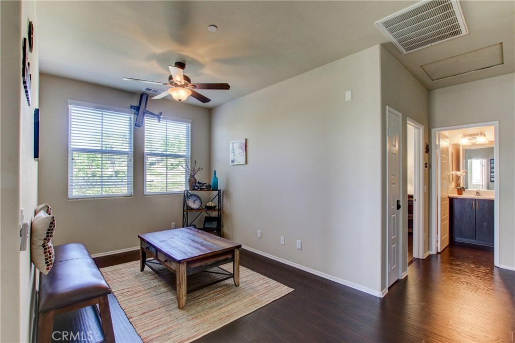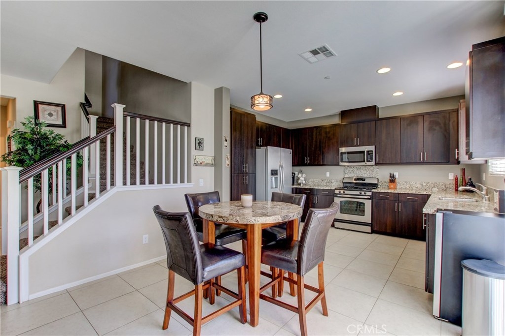 This beautiful and spacious end-unit with open floor plan offers one of the largest lots in the highly desireable community of Belvista. With 3 Bedrooms plus Loft plus Den, and 3 Bathrooms, this is also the largest model in the complex. 18” tile flooring, dark hardwood laminate, and newer plush carpeting throughout complements the open floorplan. Your spacious Kitchen has stainless steel appliances and sink, granite counters and ample dark cabinets. Great Room, Dining Area, Den, Half-Bath, and Laundry Room complete the Downstairs; Upstairs is large Master Suite with huge walk-in closet, two secondary Bedrooms, a Loft, storage in hallway, and Full Bath. The exterior of home has alumawood patio cover, large patio hardscape area and water-saving lush artificial turf, surrounded by block wall and vinyl fencing for a private backyard. Attached 2-car Garage with built-in full length storage cabinets, tankless water heater, whole house solar paid by Builder add to the energy efficiency of the home. The community includes pool/spa, playground and picnic area. Great location close to popular Temecula Old Town and Wineries, this home is another that will not disappoint! All furniture is available for purchase as well.