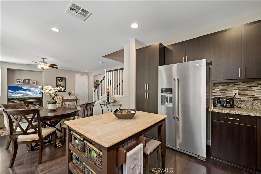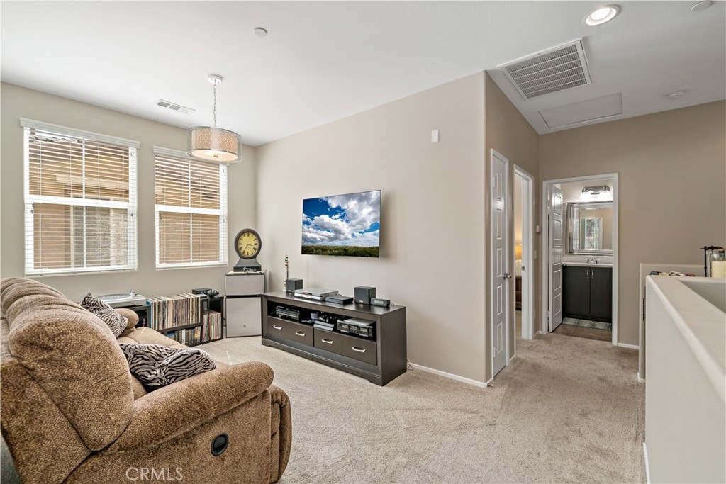 Welcome Home to your highly desirable Bel Vista Condo with 3 bedrooms, 2.5 baths, den, loft and your private back yard! Enter to a large, open-concept living area with dark wood laminate flooring 9’ ceilings, family rm, dining and kitchen - boasting granite, stainless and mocha cabinets. guest powder room leads to the laundry room with cabinets and direct access to your attached 2-car garage, featuring hanging storage shelves and an epoxy floor. All bathrooms have matching vanities, sinks and ceramic tile flooring. Upstairs is your open loft, large master suite with ensuite bath with a generous walk-in closet. Two spacious secondary bedrooms as well. Ceiling fans with lights are distributed throughout the home. Your new home is xtremely energy efficient with 20-year pre-paid solar, tankless water heater, radiant barrier sheathing and low-E dual-glazed window - the total electric bill for 2020 was under $500! Enjoy your Resort Lifestyle with HOA amenities like pool, spa, bbq grills, covered picnic areas and greenbelts. Home features a private patio area with a hill view, great for entertaining and outdoor grilling! Close to Old Town Temecula, the Duck Pond (walkable), Wineries, Pechanga, Golf, outdoor activities, shopping, dining and the I15 freeway! Perfect for Empty- Nesters, Young Professionals, a Weekend Retreat or for families!