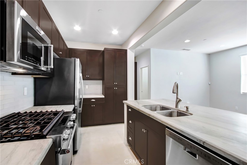 Welcome to BelVista in Beautiful Temecula! This stunning two-bedroom, two-bath condo offers stylish single-level living on the second floor with direct access from the attached two-car tandem garage. Located in the sought-after Bella Vista community, this home provides convenience, comfort, and contemporary design just minutes from the freeway, shopping, dining, and all that Temecula has to offer. Step inside to discover an open and bright floor plan featuring wood-style flooring in the living and dining areas, and travertine stone floors in the kitchen, bathrooms, and laundry. The modern kitchen is beautifully appointed with stainless steel appliances, quartz countertops, and contemporary thermofoil cabinetry. Both bathrooms showcase e-stone counters, and the home is finished with dual-pane windows with blinds, a tankless water heater, and solar for energy efficiency. Enjoy resort-style living with access to community amenities including a sparkling pool, parks, and barbecue areas—perfect for weekend relaxation and entertaining. Experience the best of Temecula living in this beautifully upgraded condo at BelVista!