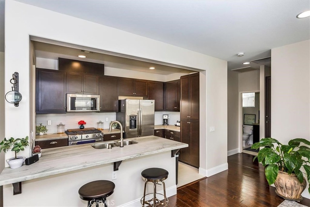 Welcome to BelVista, one of the most coveted communities in Temecula. Centrally located close to shopping, entertainment and minutes from Wine Country makes this the ideal location to call home. This wonderful floor plan boasts two bedrooms, formal dining area and great room open to the kitchen. Kitchen upgrades include designer glass tile backsplash, stunning granite slab counters, and stainless steel appliances. The dining room is large enough to accommodate friends and family and opens to the great room, a perfect spot to relax after a long day. Dark wood floors provide cleaning ease and elegant design appeal. The wrap around patio is the perfect spot to take in the Temecula breeze and enjoy stunning sunsets. Low utility bills are attributed to dual pane windows, radiant barrier reflective roof sheathing in the attic keep the home cooler in the summer and warmer in the winter, tankless water heater and lets not forget that the solar system lease was pre-paid for 20 years by the builder with approximately 14 years prepaid left on the system - wow this is truly incredible and almost unbelievable!!!!! Hurry, this amazing property won't last long!