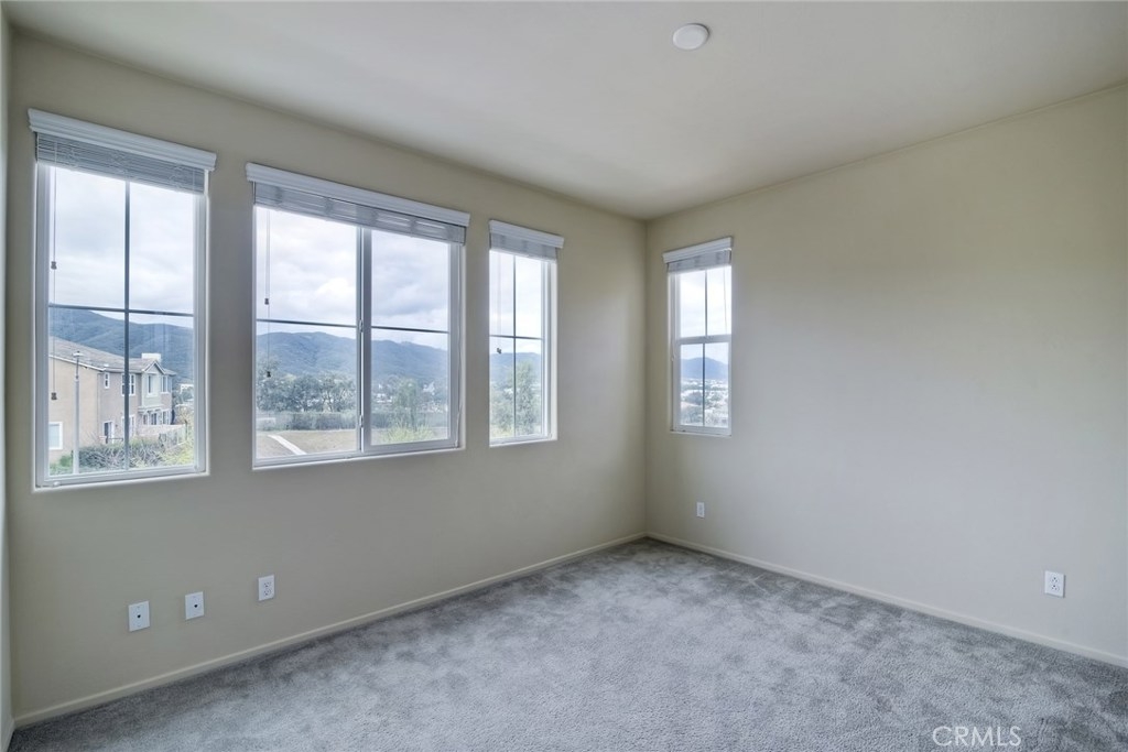 LOW, LOW TAXES AND NO MELLO-ROOS! Highly desirable BelVista Plan 3. Perimeter view location. No back yard neighbor with sunset mountain views. Adjoining walls are constructed with a 4" air gap separation with a double layer of drywall on each living space side. This provides nearly sound-proof living. This is the original owner. Granite kitchen counters w/ contemporary dark cabinets. Upgrades include open stair rail system, 20x20 porcelain tile in kitchen, dining room and living room . Builder pre-paid 20-year solar lease providing huge energy savings with no solar payments. You'll only pay low, low usage cost. Tankless water heater, radiant barrier roof sheathing, and Low-E dual glazed windows add to the utility savings. Direct access 2-car garage. Resort-style living with pool, spa, parks, barbecue grills, covered picnic areas, and tot lot. Temecula schools are top notch and the elementary school is newly renovated. You'll enjoy the close proximity to restaurants, Temecula's famous wineries, numerous golf courses, and the Promenade mall. This is the largest model in the community. It is 1,739 square feet, 3 bedrooms, 2 1/2 baths, PLUS downstairs den and a loft upstairs. The den can easily be converted to a bedroom. Powder room is pre-plumbed for a shower. Empty-nesters, young professionals, and families all love Bel Vista. It was the fastest selling community in Riverside County when it was build just six years ago!