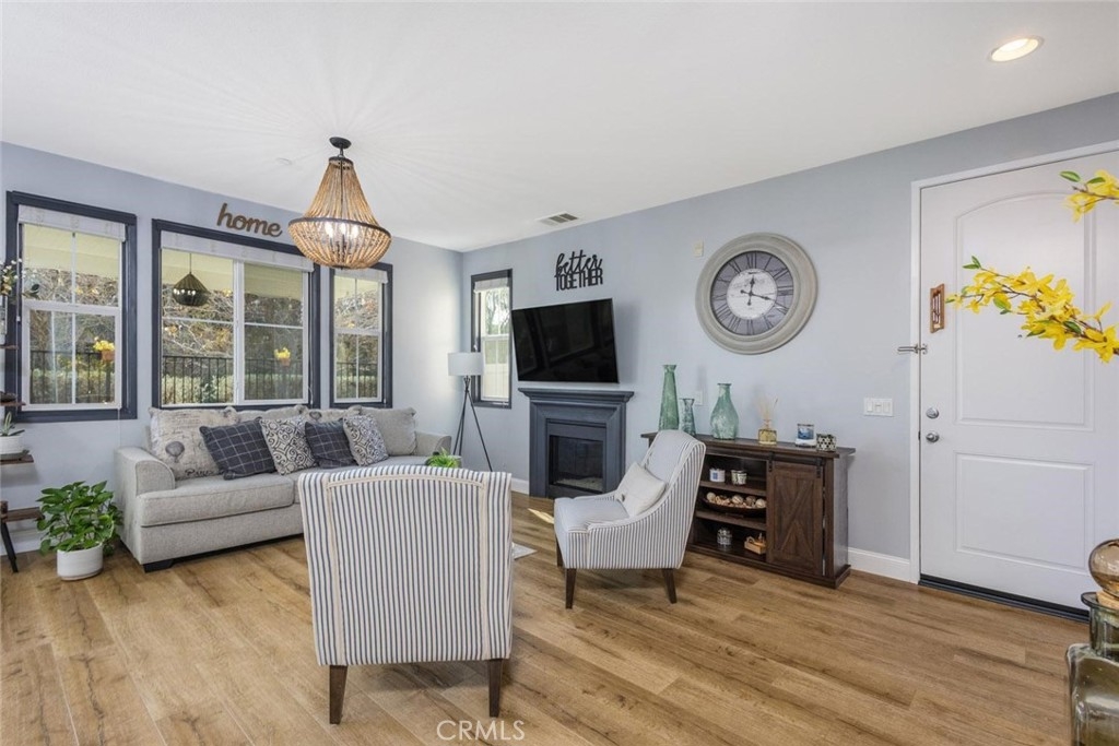 So, you don't want to share walls? I get it! While this home is technically a condo, it's a home-styled residence that proudly declares, I am NOT your average condo! Built in 2012, this modern, stylish, and energy-efficient townhome offers 3 bedrooms, 2.5 baths, solar, sleek laminate flooring, and a cozy fireplace. Granite, stainless steel and white cabinetry adorn the kitchen and unlike many units, this one features a private backyard with lush greenery not the freeway! Oh and did I mention, it is IMMACULATE, you could eat off the Epoxy 2 car garage. A well-designed layout that truly lives like a home. PLUS, you're just minutes from Temecula Parkway, the Promenade Mall, top-rated schools, dining, and entertainment, with easy freeway access for a smooth commute to San Diego or Orange County. All this, in a beautiful community with a pool & spa - comfort, convenience, and style all in one! It is a MUST see; more importantly - Sell! Thanks for showing.