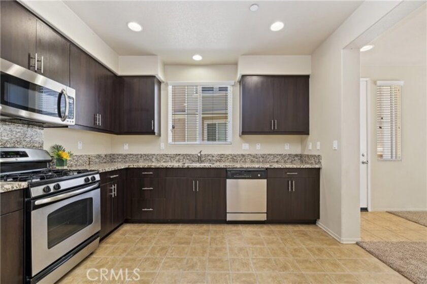 BelVista home on a prime lot location with no neighbors behind and nature views! 1523 sf of beautiful living space with an inviting floor plan, 9 foot ceilings and built in 2012. Gorgeous granite kitchen counter tops with rich dark wood cabinets, modern hardware and lots of cabinet space. Stainless steel appliances and washer & dryer are included. Spacious master bedroom with two walk in closets and dual sinks in bathroom. Contemporary dark cabinets throughout, wood blinds and ceiling fans in some rooms. Laundry area downstairs. Enjoy relaxing on the back patio with views of trees and lots of privacy. Plexiglas fencing to really soak in the views! Attached two car garage with tankless water heater and water softener system. There is a pre-paid builder solar to provide huge savings in electricity bills. No solar payments, it is paid through the HOA fee. Community amenities include heated resort style pool, spa, parks, dog area and picnic and barbecue areas. So close to everything Temecula has to offer—award winning schools, restaurants, shops and amazing Temecula wineries. Minutes to Old Town Temecula, Pechanga Casino, Promenade Mall and 15 Freeway. All this in a very low tax area. A well maintained and desirable community to be a part of. Welcome home!