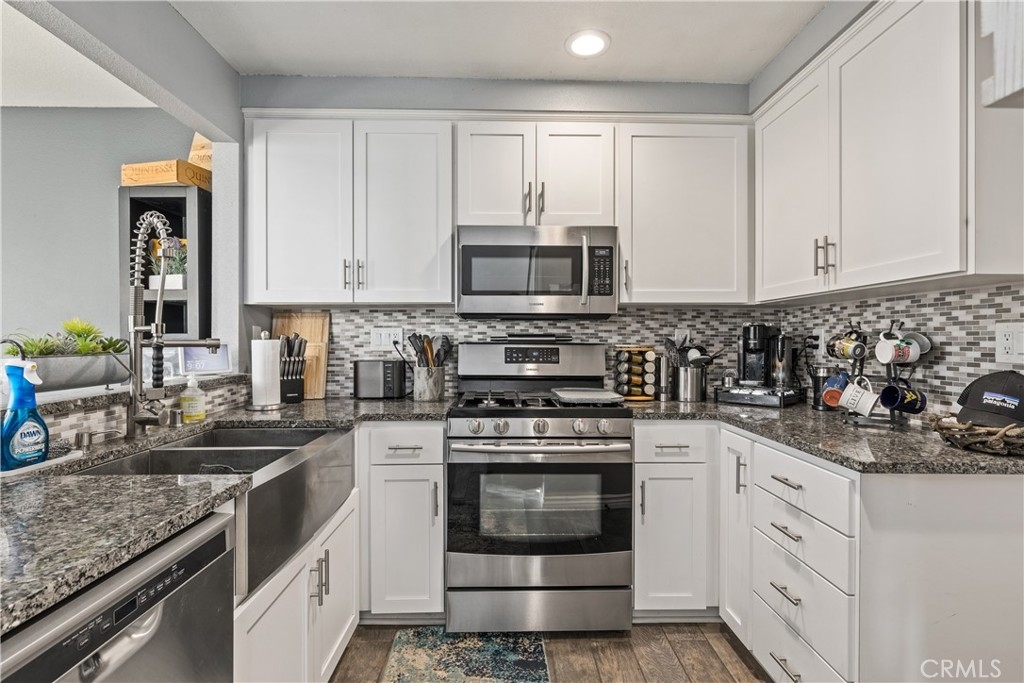Modern, stylish & posh are words that clearly describe this upscale home in the well sought after gated community of Country Glen. Upon entry into this darling property, you will be enchanted by the open concept floor plan. The well coordinated family room and dining area flow seamlessly together; accentuated by warm hues of custom paint colors that create such a cozy environment. Overlooking the dining room, is your fully upgraded kitchen with stainless steel appliances, exotic granite countertops, designer backsplash, white shaker cabinets, chef style dual sinks with brushed nickel touchless sensor faucet and much more. Throughout the model, you'll find high-end touches in many of the details of this home, such as the wood look porcelain tile flooring. On the second level, you have the master suite and two additional bedrooms, one of which has a beautifully textured barn door. The features of this home, is what makes it such a rare gem, not to mention the superb location. South Temecula, home of award winning schools, artisan restaurants, deluxe shopping and of course our famous wine country! The homeowners association provides front lawn maintenance, a private clubhouse and pool for all of the residents to enjoy! This home will not last long at all, don't miss your opportunity take a tour and present your offers! BOOK your private tour today!!