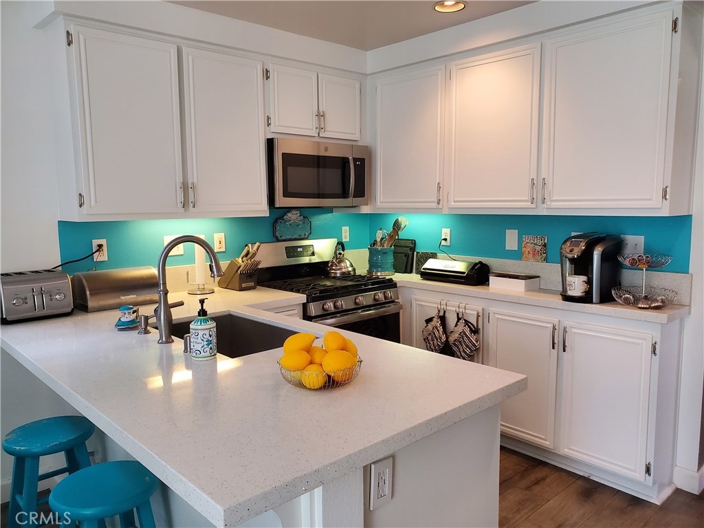 Here is your chance to enjoy this delightful gated community. Home features laminate flooring, shuttered windows, newer stove, dishwasher, hot water heater and air-conditioning. this home has many upgrades. There is a cute little gated walk up entry and a nice shaded back yard. HOA amenities include play ground, pool and spa. Walk to restaurants, groceries, pharmacies, hospital and doctors. Many more commercial businesses in area.