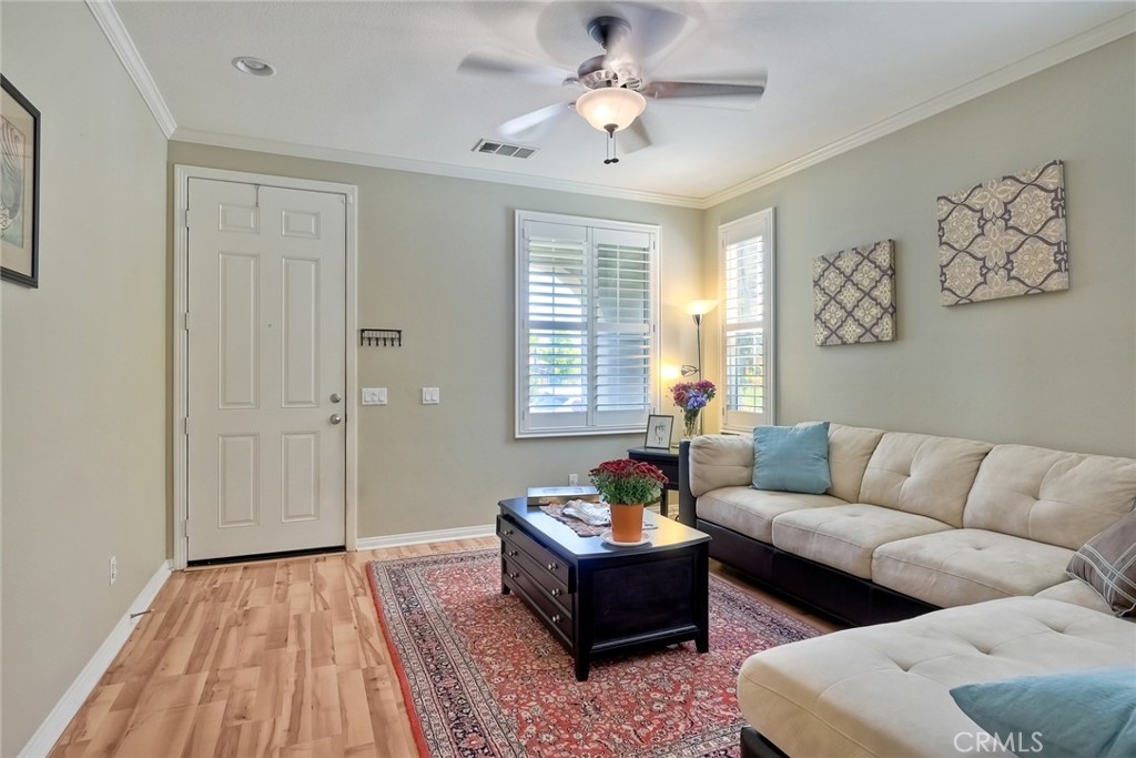 Welcome to this beautiful home in the highly desirable neighborhood of Wolf Creek Community in South Temecula. Upon entering this home you will see an inviting porch and sitting area. Then make your way inside to the formal living room. Next, is the first-floor master bedroom with an en-suite bathroom, soaking tub, stand-up shower, dual sinks, and a walk-in closet. The kitchen features a center island with granite countertops, lots of cabinets, and a refrigerator is included. Through the kitchen is access to a covered porch on the side yard and a separate door gives entry to the backyard. Upstairs has a large family room with a gas fireplace and a loft area office with a built-in desk & cabinets. The second floor includes two bedrooms, a full bathroom with a shower-in-tub, and an individual laundry room with a sink and plenty of cabinets. The two-car garage has epoxy flooring. Upgrades include custom paint, crown molding, ceiling fans, recessed lighting, plantation shutters, wood laminate flooring, and more. Wolf Creek amenities offer a community pool & spa, kids pool, fitness center, clubhouse, walking trails, plus parks and play areas. Easy access to 15 Freeway and just down the street from the local hospital. Conveniently located near restaurants, shopping, Temecula Wine Country, top-ranked schools, and more. Upon request, we can provide the seller disclosures, preliminary title & home inspection reports, plus termite clearance.