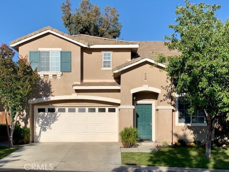This gorgeous turn-key 3 bedroom, 2.5 bath home with nearly 2,000 sq. feet of living space is located in the gated community of Laurel Creek in beautiful Temecula. The spacious formal living room, dining room area is stunning with dramatic vaulted ceiling and lots of natural light. The updated kitchen features bright white cabinets, tile backsplash, granite countertops, and large center island. The breakfast nook opens to the family room with fireplace and room for a large TV in the built-in entertainment inlet. Sliding glass doors lead to a low-maintenance backyard with large newly tiled, covered patio, perfect for entertaining. Flooring throughout the home has been upgraded. All bedrooms are upstairs, as well as two full baths and separate laundry room. Double doors lead to an impressive master retreat. The expansive master bedroom has ample room for a bedroom set and extra seating and/or exercise equipment. The huge en suite master bathroom features double sinks, large tub, and separate shower stall. French doors in the master lead to the amazing balcony! This immense space is perfect for lounging, watching a movie, entertaining, or just enjoying the views of Palomar Mountain. Community amenities include pool, spa, clubhouse, and playgrounds. Located close to shopping, schools, parks, and wine country, this beautiful home is definitely a MUST SEE!