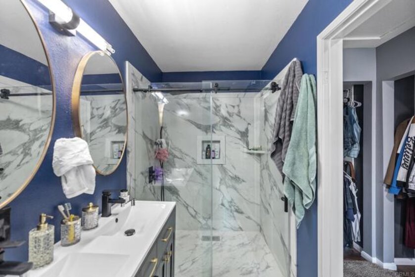 29495 Cara Way, Situated on a desirable corner lot, this spacious two-story condo offers enhanced privacy and abundant natural light throughout its 1,407 square feet of thoughtfully designed living space. UPDATES THROUGHOUT! New bathrooms, closets, kitchen, LVP floors, pantry, fixtures, ceiling fans, and paint. Built in 1990, the home features striking double-height ceilings that create an open and airy atmosphere. The residence includes three bedrooms and two and a half bathrooms, with each secondary bedroom boasting its own en-suite bathroom, ideal for family members or guests seeking privacy and comfort. The warm primary bedroom is a true retreat, complete with a cozy fireplace and a custom closet system that maximizes storage. The kitchen is well-appointed with ample counter space, a large walk-in pantry, and cabinetry designed for efficient meal preparation and storage. Bathrooms feature double vanities and a luxurious rain shower in the primary bath, elevating everyday routines. Durable and stylish luxury vinyl plank (LVP) flooring flows throughout the main living areas, while an inside laundry room adds practical convenience. This home sits on a generous 3,920 square foot lot, providing a balance of indoor comfort and outdoor space. Located within a gated community, residents enjoy access to a variety of amenities including a clubhouse, fitness center, tennis courts, a playground, a community pool, and spa. The community is well-maintained and offers a secure, friendly environment. Conveniently positioned near multiple parks, diverse shopping options, and a wide selection of dining establishments. Quick access to the I-15 freeway makes commuting straightforward. This property presents an excellent opportunity for those seeking a combination of comfortable living and excellent amenities. Don’t miss this centrally located gem—schedule your showing today!