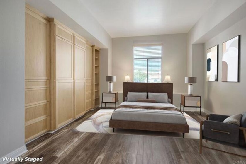 This 3-bedroom, 2.5-bath home offers over 1,300 sq ft of living space. It features a great room with abundant natural light from sky-room style windows, vaulted ceilings, and sliding doors that open to a private front patio. The home also includes a direct-access garage, an additional detached garage, custom bamboo kitchen cabinets, and stone-coated concrete countertops. Unique amenities include a cedar wood shoe and purse closet with solid cedar shelving, a kitchen pantry, upgraded kitchen appliances, a refrigerator, upright freezer, and a second-level LG ThinQ stacked washer/dryer unit with white shaker cabinets and an upgraded white stone counter top. Located in the heart of Temecula, this quiet community provides easy access to shopping, Promenade Mall, restaurants, vineyards and the I-15 freeway. Community amenities include a pool, spa, tennis court, gym and a community room for private events. The HOA has approved upcoming community enhancements, including roof replacements, full community painting, and new black powder-coated 6' wrought iron fencing with magnetic-lock gates. These improvements are expected to be completed within a year, with no special assessment to residents. HOA is approved for VA financing.