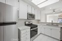 Have you been searching for that completely remodeled, move in ready condo? Well, look no more. This 2-bedroom condo has everything you have been wanting from, beautiful newly installed custom tile throughout the lower level including the living area with gas fireplace framed in light colored quartz, family dining area, breakfast bar and kitchen have been upgraded with quartz counter tops, new dishwasher, microwave, gas oven, refrigerator, new farm sink, freshly painted white cabinets and upgraded lighting features. There is plenty of storge with 2 lower-level closets you can use one for a pantry. Lower bath has new vanity, lighting features and much more. All new baseboards throughout the condo. Upper level has nicely sized guest room, mirrored wardrobe doors, ceiling fan and newly installed carpet. Guest bath has completely been updated, new shower/tub combo, vanity, new tile flooring, mirror and lighting features. Main bedroom is very spacious with newly installed carpet, large, mirrored wardrobe doors and ceiling fan. Main bath is all new as well with new shower/tub combo, vanity, lighting and flooring. There is a laundry closet with double folding doors and a new washer and dryer. This condo has been completely redone from top to bottom! Attached 2 car garage with epoxy flooring. This unit is bright with lots of natural lighting. The community has sport court, pool and club house. Location is perfect for walking to school, promenade mall and the MSJC campus. Did I mention the private gated front patio area! Get ready to move!