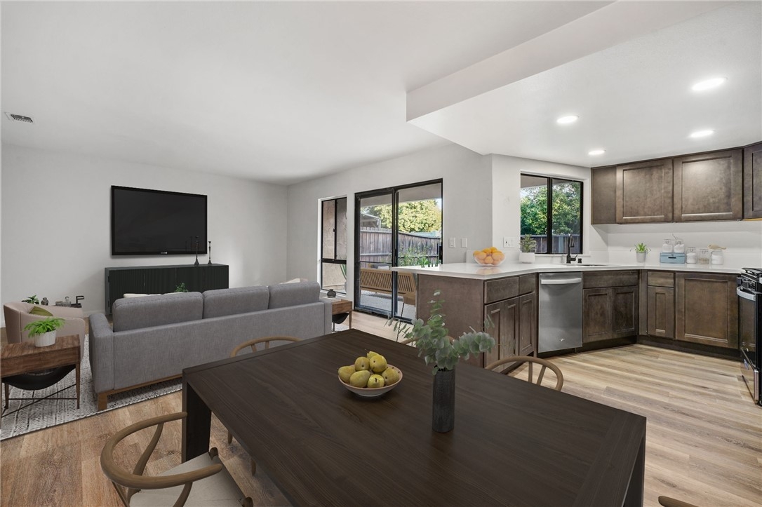 Welcome to 44577 La Paz Rd in the beautiful community of Rancho Meadows in South Temecula! This beautiful 3 bedroom, 2.5 bathroom condo has gorgeous NEW Laminate floors throughout, and NEW Carpets in the Bedrooms and the stairs.. plenty of natural light, and a spacious interior. Once inside, you'll find a large living room with a cozy fireplace. The huge dining area makes the perfect spot for hosting dinner parties and get-togethers and features a sliding glass door that leads to the back patio. NEW ceiling fans, the bathrooms have new vanities, showers, NEW fixtures, NEW kitchen cabinets with NEW Quartz countertops, all NEW stainless-steel appliances, NEW interior paint. attached single car garage with a covered carport for your second vehicle.. Residents have exclusive access to two pools, a relaxing spa, and a basketball court, providing opportunities for fitness, recreation, and socializing. The beautifully maintained common areas create a sense of community, and the nearby vineyards add a touch of local charm. Whether you're enjoying a morning coffee on the private patio or taking a walk enjoying the community. That's not All This home convenient to I-15 freeways, very close to Old Town Temecula, Casinos and the Temecula Wineries! Don't miss the opportunity to make this condominium your home.