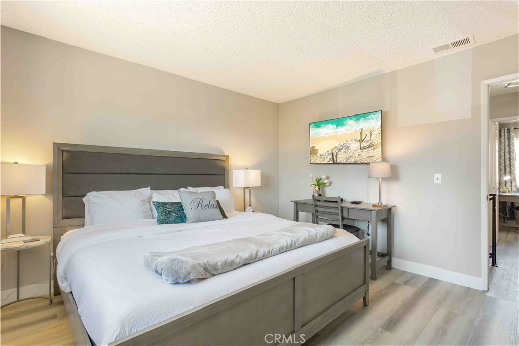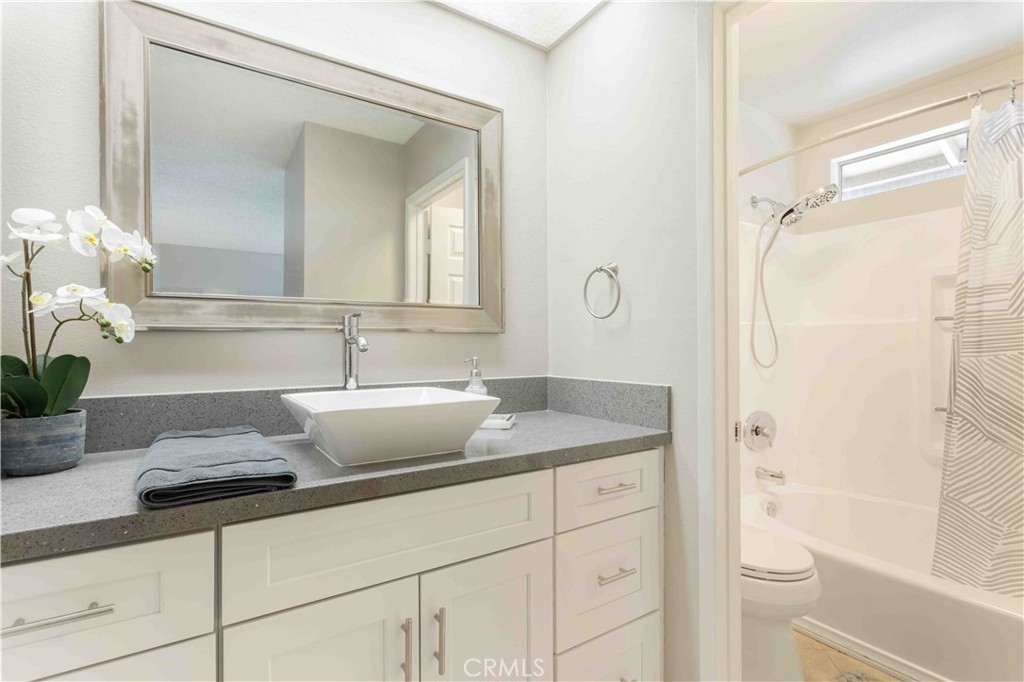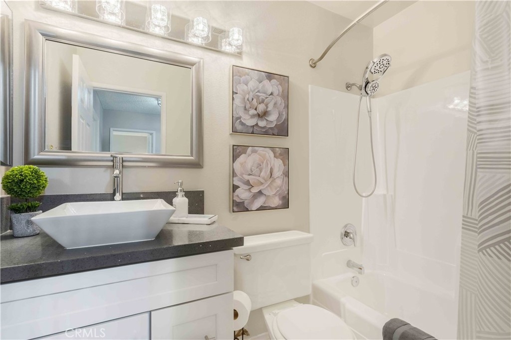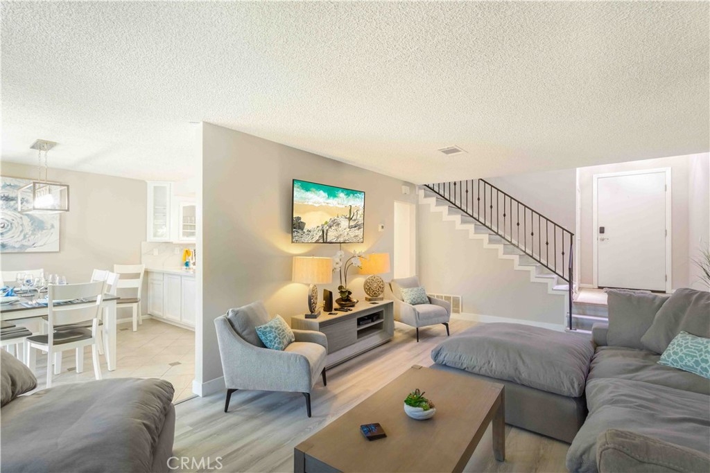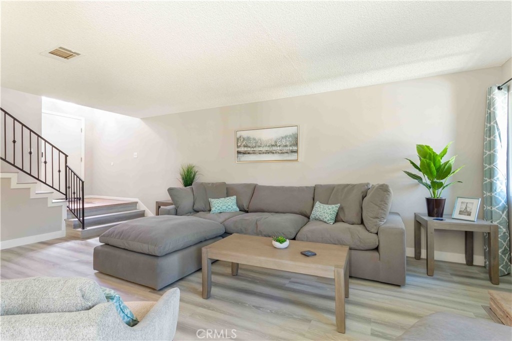 Located in South Temecula, this two story attached home has been completely remodeled with updated flooring, paint, appliances, cabinets and MORE! 3 bedrooms and 2.5 baths. Laminate and LVP wood flooring and neutral paint throughout. Remodeled kitchen features quartz countertops, white cabinets, Family room and dining area are off the kitchen. Small private backyard with views of mountains includes patio area and artificial turf. Master bedroom, bedrooms and 2 full baths are upstairs. Hallway closet for storage. Bathrooms have all been remodeled with new sinks, showers and vanities. Attached two car garage. Community has association pools, spa and basketball court. Conveniently located with easy freeway access and minutes from schools and shopping. Trash and Water included.