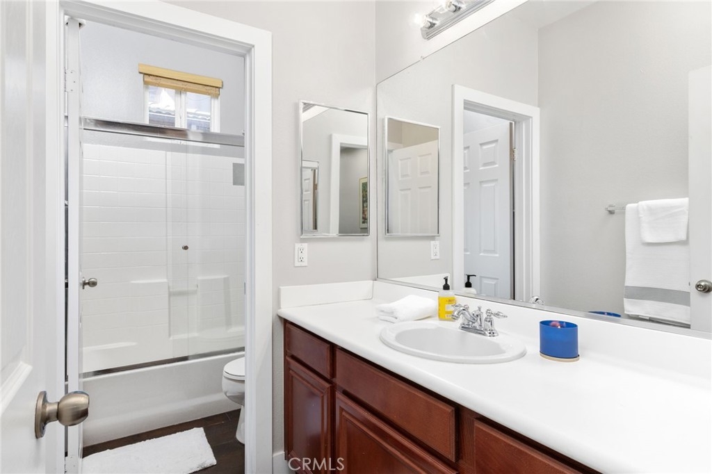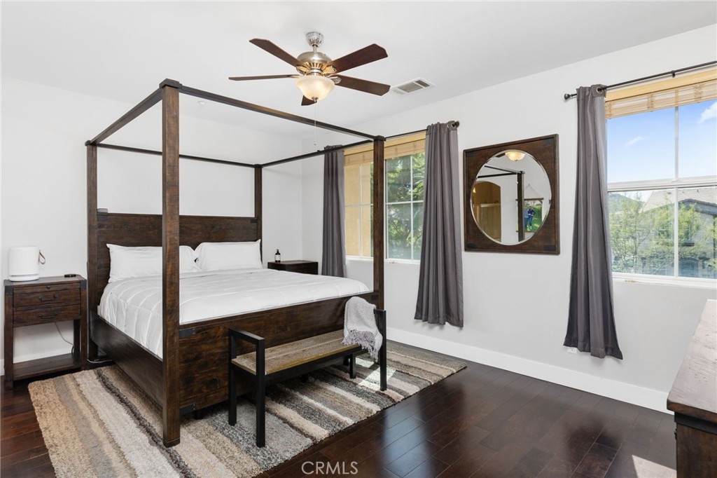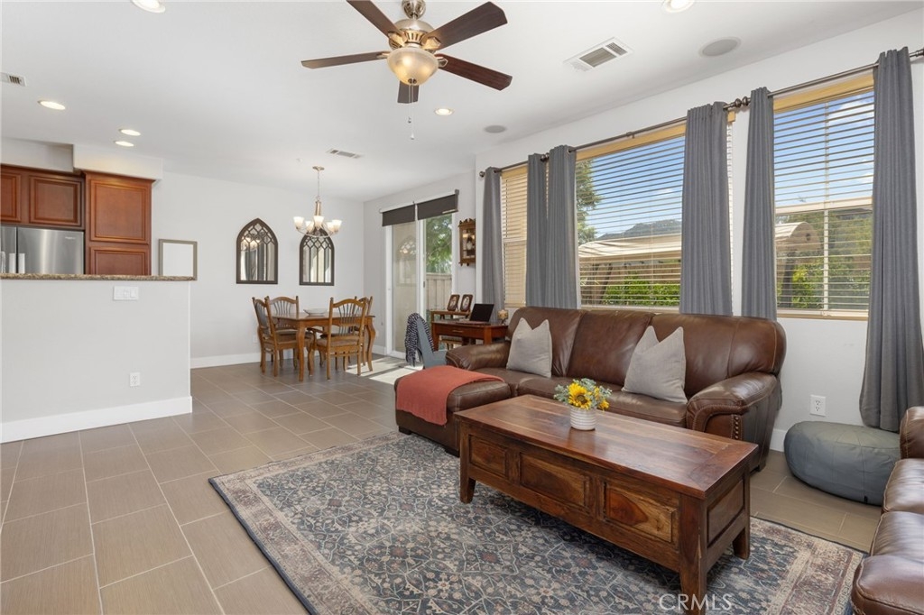 Introducing a stunning 3-bedroom, 2.5-bathroom home that effortlessly blends modern living nestled in the Gated Community of Temecula Lane. The home features 2 single car garages providing ample storage. Carefully designed making it the perfect place to call home. Step inside to discover upgraded flooring that not only enhances the aesthetic appeal of your home but also ensures easy maintenance. The living area downstairs boasts audio speakers, creating an immersive experience for both your everyday life and entertainment. 3 spacious bedrooms provide plenty of room for relaxation, work, or play with 2.5 well-appointed bathrooms. The master bedroom features a walk-in closet with built-ins, offering both practicality and style. Every room is equipped with ceiling fans, promoting a comfortable atmosphere throughout the year. One of the most enticing features is the lack of rear neighbors, providing you with added tranquility and serenity.The private backyard is adorned with citrus trees, allowing you to enjoy fresh fruit right in your own backyard while enjoying peek-a-boo mountain views. The community offers a pristine pool and spa area where you can relax, unwind, and soak up the sun. A dedicated BBQ area makes it easy to host outdoor gatherings and cook up delicious meals with friends and family. Enjoy on-site playgrounds, providing a safe and fun place to play. The clubhouse is an ideal spot for hosting events, meetings, or simply spending quality time with your neighbors. You have exclusive access to Pala Park that features tennis courts, sand volleyball and scenic walking trails that wind through the community, offering picturesque views and fresh air. The perfect blend of privacy, luxury, and community living. It's not just a home; it's a lifestyle. Come and experience the best of both worlds!