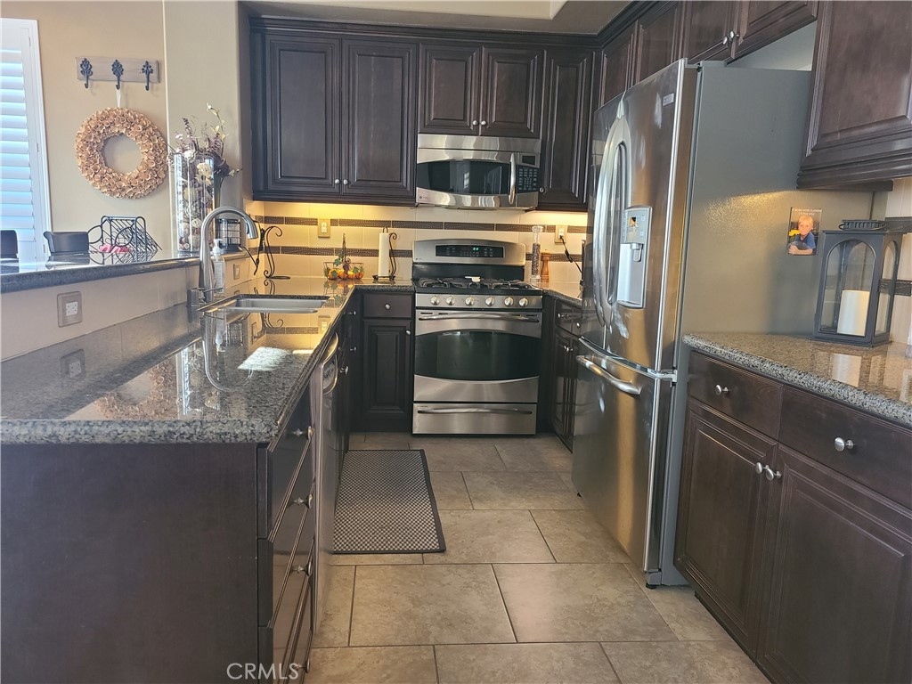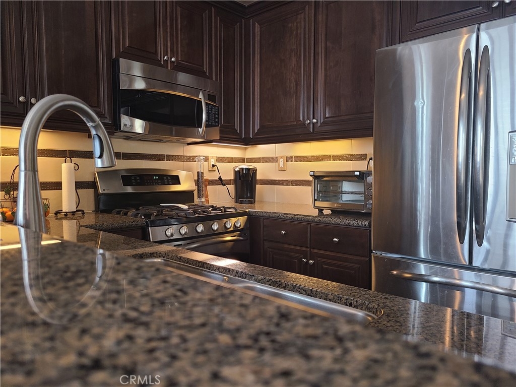STOP THE CAR! This former model home features neutral custom paint, plantation shutters, wide baseboards, crown molding upstairs and 20" ceramic tile floors on 1st level across from the pool. Here is where you will find your kitchen with beautiful granite counters, upgraded backsplash, dark cabinets with under cabinet lighting. Stainless steel appliances & wainscoting on your breakfast bar. Open floor plan with living room, dining room next to kitchen. Slider leads to your balcony. There is a 1/2 bath & laundry downstairs next to your 2 car garage entrance. 2nd level features the master bedroom with walk-in closet with organizer system. 3rd level has 2 bedrooms with dual sink bathroom and linen closet for the top level. The Temecula Lane community includes a community center, pool, spa and BBQ area. Just walking distance to surrounding trails, parks and Red Hawk Elementary, Gardner Middle School and Great Oak High School. Easy access to I-15, restaurants, shopping, golf, Old Town, Temecula Wineries and Pechanga Casino. A must see!