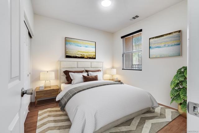 Gorgeous and upgraded townhome located in the desirable gated community of Temecula Lane. Featuring 3 bedrooms, 2.5 bathrooms, 2 single car attached garages, and large, peaceful back yard. Impressive highlights include: dark laminate wood flooring, neutral tile, crown molding, fireplace, open living area, media niche, family room ceiling fan, and recessed lighting. Stunning kitchen offers granite counters, dark wood cabinetry, and stainless steel appliances. Upstairs discover the serene master suite with walk-in closet and nice sized bathroom with dual sinks. Both guest bedrooms are ample sized sharing a spacious guest bath. Extra linen storage can be found in upstairs hallway. Resort-like community amenities: pool, spa, BBQs, playgrounds, walking trails, clubhouse & near parks, schools, shopping & more.