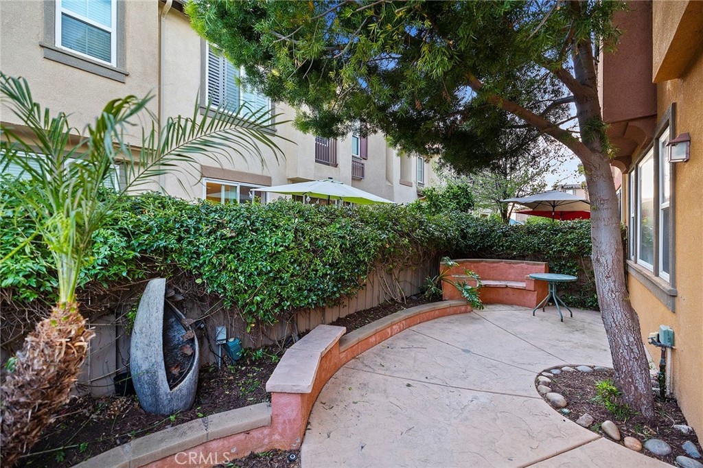 So cute this home is and the community is amazing! The community is gated and upon entry you find yourself at a sparking pool with picnic and BBQ area, centrally located to shopping and freeways. This lovely condo offers 3 bedrooms upstairs with 2 full bathrooms up and 1 half bathroom down. Home has brand new paint and carpet and offers custom built in off the living room next to the cozy fireplace. The kitchen offers granite countertops, rich dark cabinetry with stainless steel appliances. The largest bedroom offers a private bathroom with double sinks a garden tub and walk in shower. Also in this space are 2 walk in closets. Laundry upstairs as well. Just off of the living room is an oversized private patio with built in seating area with space for a BBQ and lounging.