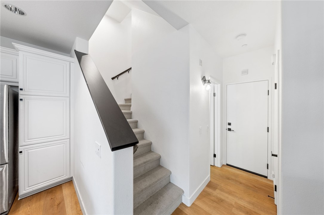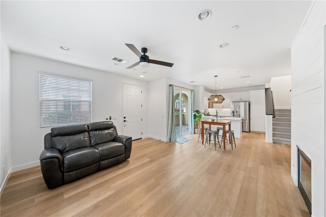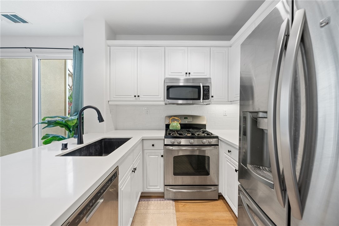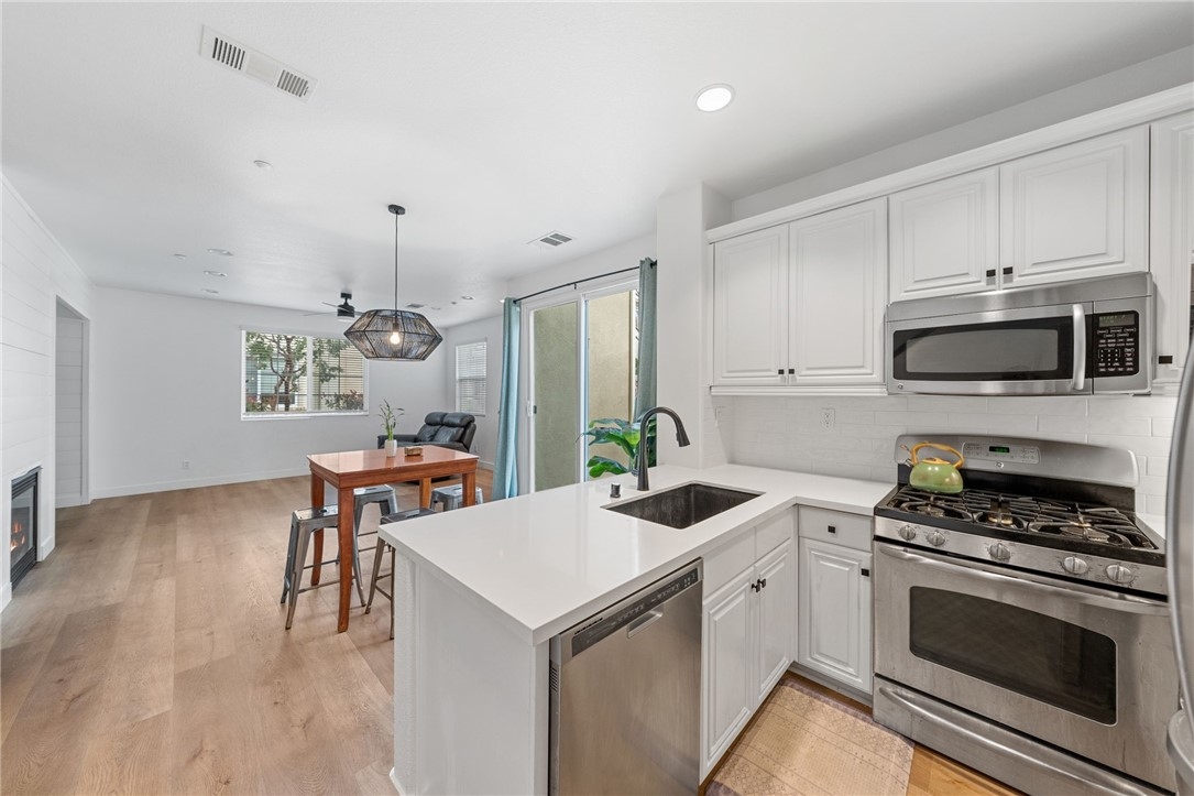 Step into the epitome of modern comfort with this charming tri-level residence! As you enter, you'll be greeted by a spacious living room, complete with a cozy fireplace. The living room seamlessly flows into a kitchen equipped with top-of-the-line appliances, including a gas range and quartz countertops, complemented by a stylish subway tile backsplash, clean white walls, and durable vinyl floors. Adjacent to the staircase is convenient indoor laundry space, adding practicality to the layout. Upstairs, discover three bedrooms featuring plush carpet floors and serene white walls, with the main bedroom offering the luxury of a generous walk-in closet. Luxurious bathroom features include a shower in the tub, double sinks in the master bath, and quartz countertops. Step outside to your private concrete patio within the secure gated community, where you'll have access to resort-style amenities such as a pool, spa/hot tub, barbecue area, playground, and meticulously maintained grounds. Moreover, the neighborhood boasts sidewalks and street lights for added convenience and safety. Additionally, this home is conveniently situated near local golf courses, Pechanga Casino, Old Town Temecula, Wine country, and excellent schools, parks, shopping, and restaurants!!!