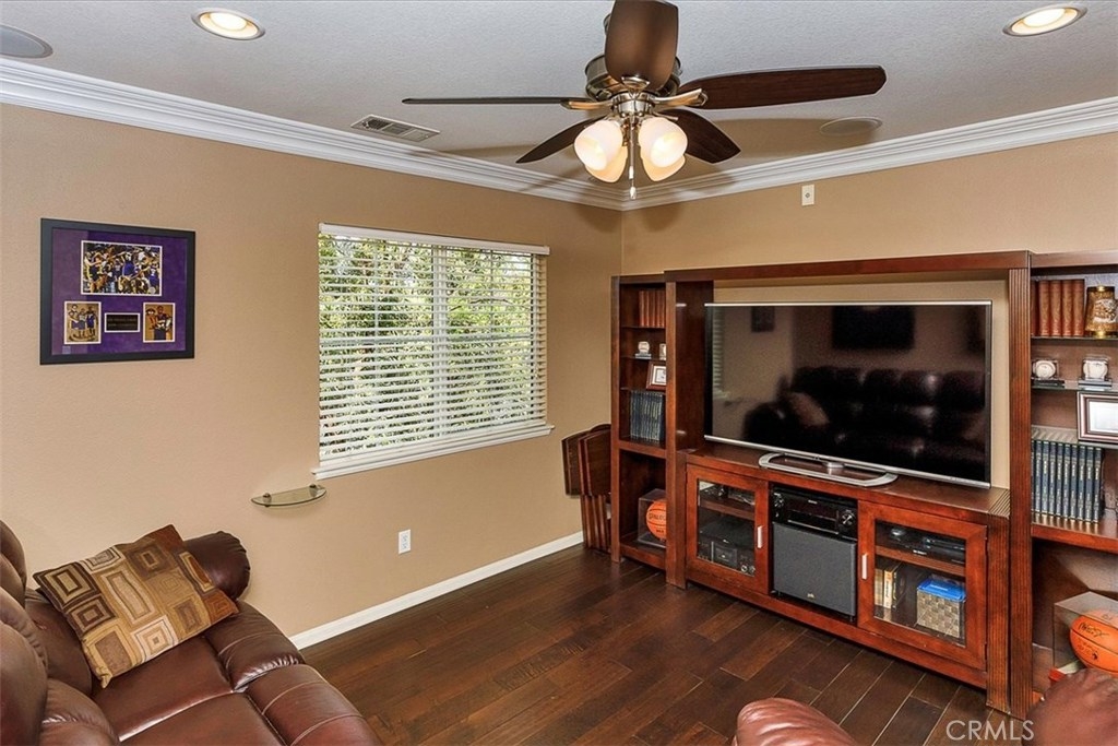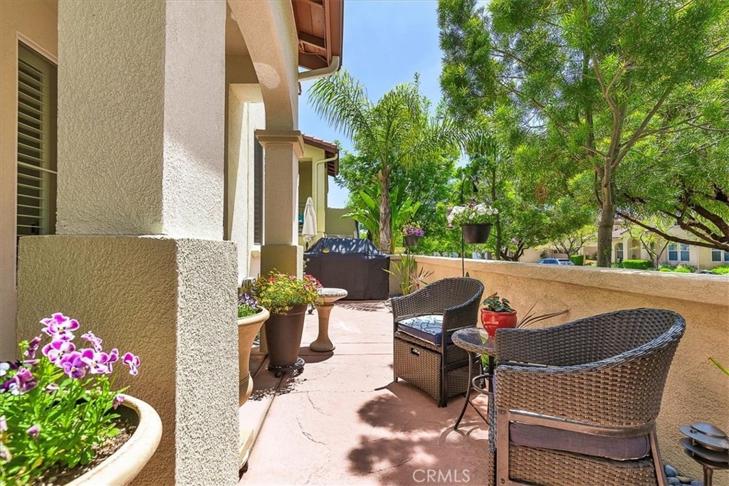 Highly upgraded Temecula Townhome in desirable Harveston. This corner unit has a wrap around porch and is situated across from the Lake House. This Townhome is surrounded with green space that provides a park like setting from your covered patio. Hardwood floors, ceiling fans in every room, In-ceiling surround sound in the family room and loft are just a few of the many upgrades in this Townhome. You will also enjoy custom-built Cabinetry throughout the Family Room and Master Bedroom. Downstairs has an open floor plan with plantation shutters, fireplace in the family room and the Kitchen features Granite counter tops, stainless steel appliances a pantry and custom pull out drawers. Attached 2 car garage provides direct access to the Indoor laundry room, ½ Bath and kitchen. Upstairs features a large loft area that separates the master bedroom from the other two bedrooms and third bathroom. Master bathroom has dual sinks with granite counter tops and a walk-in closet. Harveston is a beautiful Master Planned Lake Community, conveniently located minutes from the I-15 & 215 freeways, the Promenade Mall and Temecula wineries. Lakehouse offers private facilities for residents, a Jr. Olympic Pool, Spa, Splash Park, and Clubhouse- all overlooking scenic Harveston lake.
