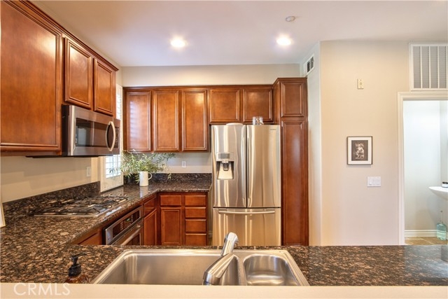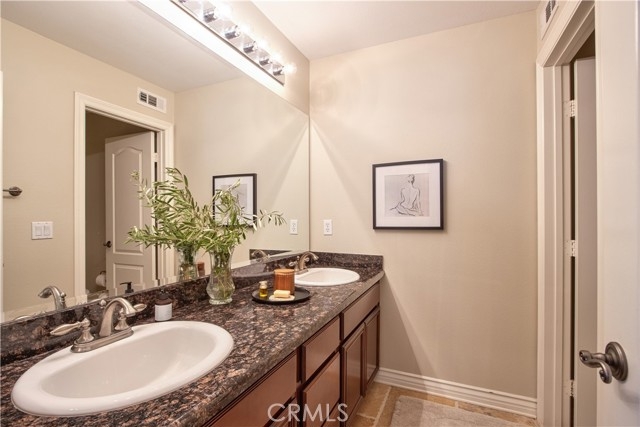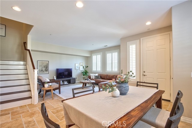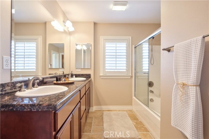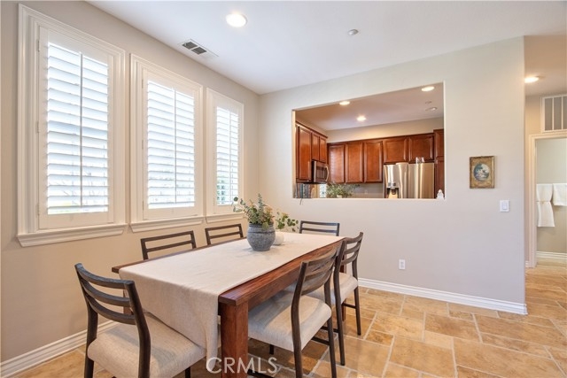 Exquisite Savannah at Harveston Residence! This stunning corner-lot home is flooded with natural light from its abundance of windows. Offering a luxurious living experience, this meticulously upgraded property features 3 bedrooms plus a loft, 2 1/2 bathrooms, and a host of desirable improvements. Inside, you'll find plantation shutters, tile, and laminate wood flooring throughout, ensuring elegance and easy maintenance without a trace of carpet. The kitchen is a chef's dream with granite slab counters, stainless steel appliances, upgraded cabinets, and a generously sized walk-in pantry. The downstairs laundry room provides ample storage with upper cabinets and a small pantry. Upstairs, discover three bedrooms and a loft with a built-in desk and shelving, ideal for a home office or study area. The primary bedroom and en-suite bathroom are beautifully appointed with granite counters, upgraded cabinets, and a spacious walk-in closet. Outside, the charming front courtyard offers a serene spot to relax and enjoy the gentle breezes. The two-car garage features epoxy floors for a clean and polished look. Conveniently located just a short stroll from the lake and clubhouse, this property offers more than just a home; it provides a lifestyle of leisure and comfort.