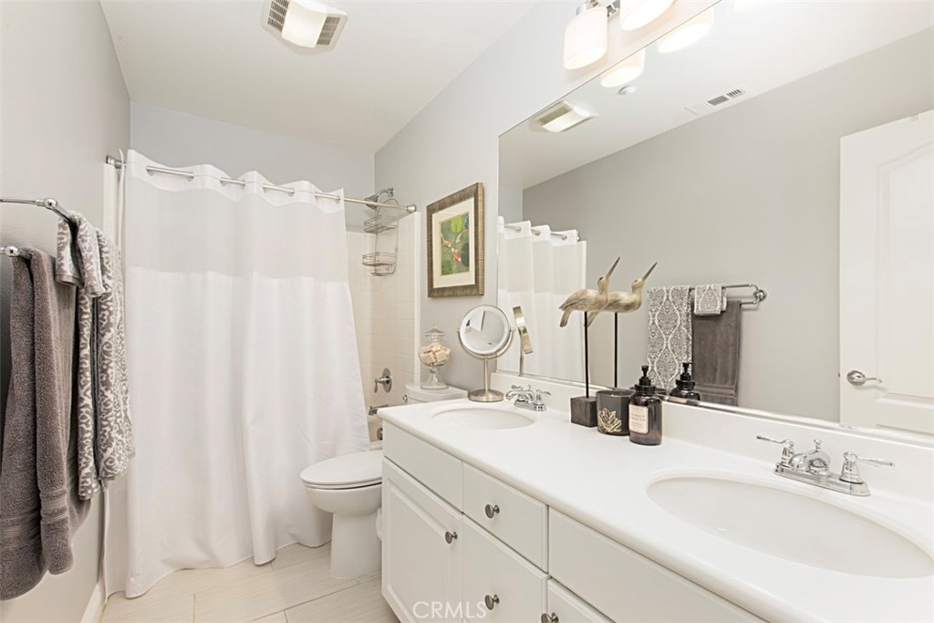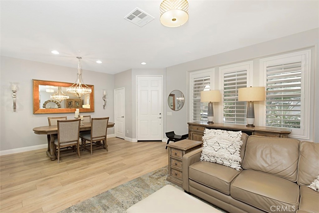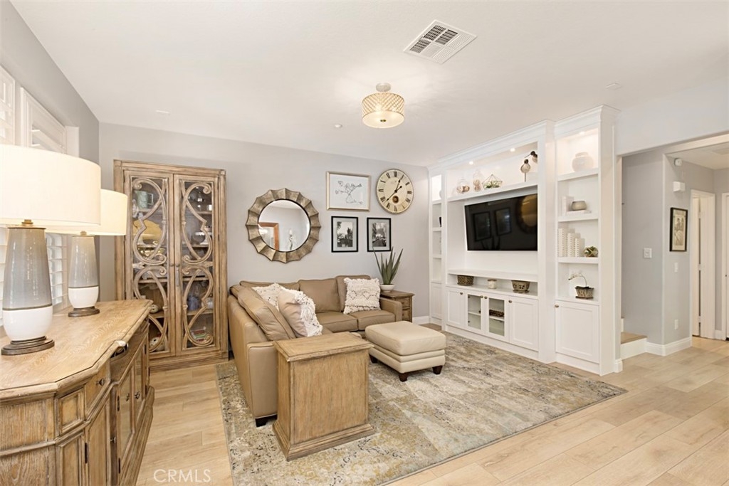 This fully upgraded and turnkey home is located on a very private cul-de-sac in the very desirable Harveston Lake community. The home appraised for $615,000 so a great investment. Sellers are motivated. It has 3 bedrooms and 21/2 bathrooms plus a niche area upstairs which is perfect to set up a small desk for an office/study area. From the moment you enter through the large gated courtyard you will appreciate and love the custom quality upgrades throughout the home. There is beautiful natural color luxury vinyl plank flooring throughout the living area, dining area and kitchen on the main level and continued on the stairs, landing area and primary bedroom. The bathrooms and laundry room also have upgraded custom tile flooring and both secondary bedrooms have high quality carpet. These are all complimented with custom designed baseboards.The family room showcases a custom built-in media cabinet with lighting, plantation shutters and custom light fixtures. The kitchen has gorgeous quartz countertops including a serve through counter that opens into the good size dining room. It also features a glass tile backsplash, stainless steel newer appliances including the refrigerator plus a large farmhouse stainless steel sink.There is a powder room downstairs with an upgraded sink and mirror plus storage cabinets next to the kitchen to store your food items. Other upgrades include custom paint throughout, plantation shutters, custom light fixtures plus ceiling fans in all of the bedrooms and newer one-piece skirted toilets in all of the bathrooms. The oversized master bedroom suite has room for a T.V. and sitting area plus a large walk-in closet and step in shower.The upstairs laundry room has lots of storage cabinets.There is a two car garage with plus extra parking available on the street and inside the community.The courtyard has lots of beautiful potted plants, providing privacy plus an arched covered area, perfect for sitting and relaxing outside. Furniture is negotiable. You are just over 500ft. from the beautiful Harveston lake where you can walk or rent a boat. The HOA plan activities at the clubhouse throughout the year for the residents. Enjoy all the amenities that Harveston has to offer including a Jr. Olympic Pool, Spa, and Children's Splash Park. Harveston is one of Temecula's most conveniently located neighborhoods,close to shops,schools and restaurants,plus a short drive to Temecula Old Town and Wine Country. Harveston, a great place to call home.