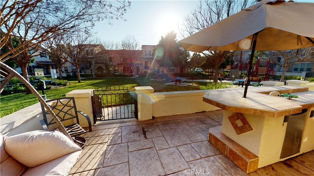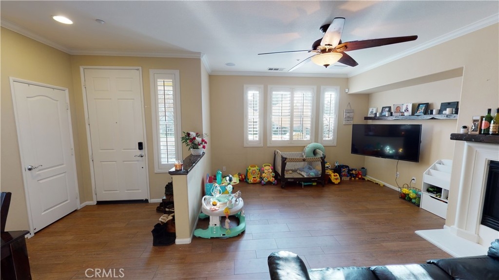 This lovely home offers everything you need for entertaining and a happy family. Starting with the moment you arrive into this private park and courtyard. An awesome BBQ island with grill, refrigerator, umbrella, speakers and plenty of seating for all. The main house entry welcomes you with beautiful hardwood tile floors and plantation shutters throughout the home. Natural lighting and high ceilings. The family room is perfect with a lovely upgraded fireplace and a dark wood mantel that matches a few shelves throughout. Complete with surround sound and crown molding.The kitchen is open and bright with lovely granite and upgraded stainless steel appliances. Complete with a pantry. A main floor powder bath for guest and laundry room with extra storage completes the first floor. 2nd floor offers a loft area and 3 bedrooms. Large master with plantation shutters, a big bathroom and walk in closet. Bedrooms all have ceiling fans and the shared bathroom has with double sink's, is perfect for the kids. 3rd floor is great for personal space or the guest with it's own bathroom. Garage is a dream with epoxy flooring and tons of storage with highly upgraded built in cabinets. It doesn't get better than this! Harveston offers a 17 acre park, man made lake, paddle boat rentals , fishing, picnic, concerts, lake house, pool, spa and pavilion. A 19 acre sports park too.