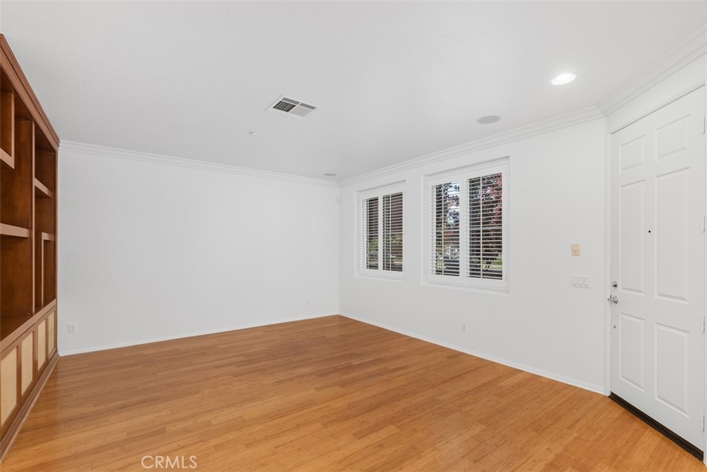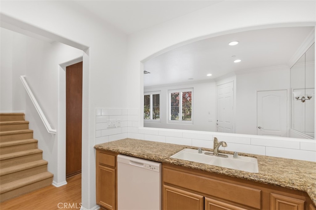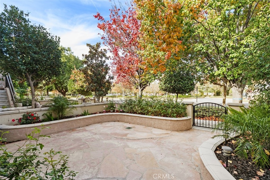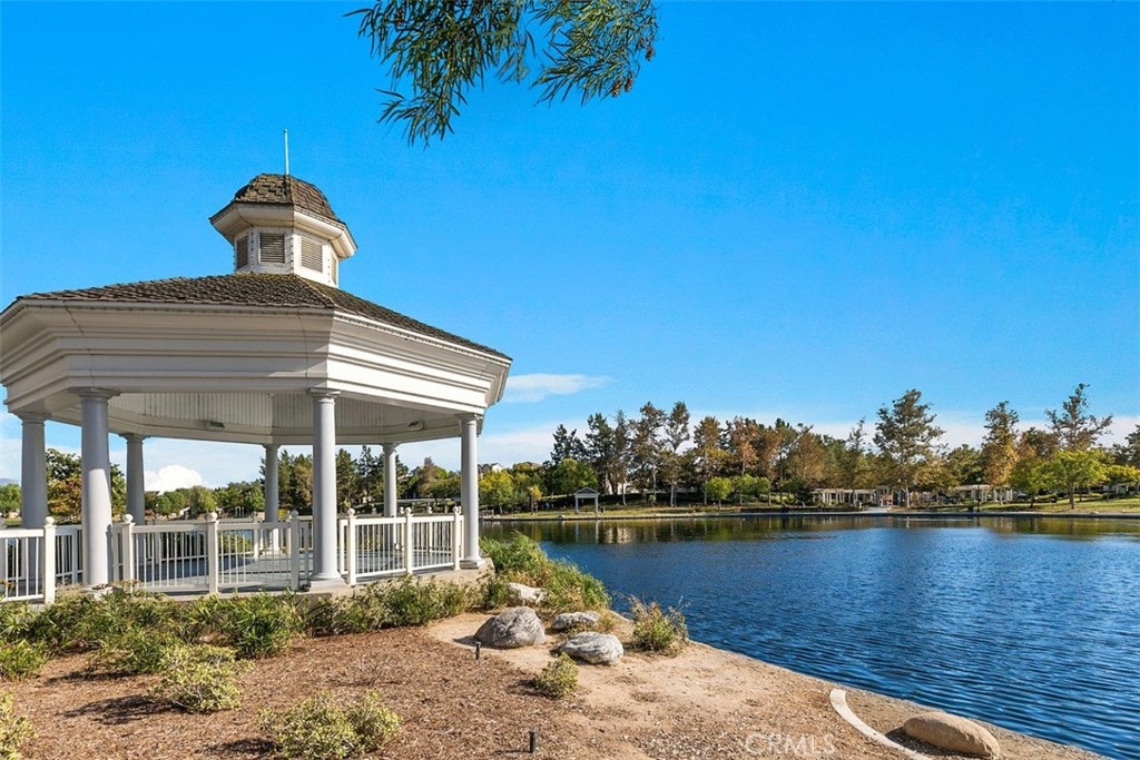 This former model townhouse is located in the desirable Harveston lake community across the street from the lake and the clubhouse. It has 3 bedrooms and 21/2 bathrooms.The kitchen has granite countertops plus a new white tile backsplash, lots of storage, new dishwasher and a new microwave. The family room has a built in media cabinet and crown molding. There is bamboo flooring throughout the main floor. The powder room is downstairs. There are plantation shutters throughout. The interior of the house was recently painted. There is a built in desk area and storage cabinets upstairs. The master bedroom is a good size and has a built in dresser and crown molding. Both guest bedrooms have built in cabinets. The master bathroom has double sinks and a step in shower with a new shower head plus a walk in closet. The guest bathroom has a new shower and tub door. The laundry room is upstairs. The A/C has been replaced. Another great feature is the extra large courtyard with custom planters where you can sit and relax. Two car garage with epoxy flooring. HARVESTON offers so much: a 17-acre Lake with a mile-long lakefront trail to enjoy, a public sports park with lighted sports fields, picnic area, playground and walkways. It features a lovely clubhouse and grounds where the HOA hosts special events throughout the year for the residents.There is also a swimming pool, spa and splash park. Harveston is close to schools, shops, restaurants and the freeways. A great place to call home!!