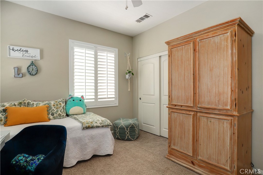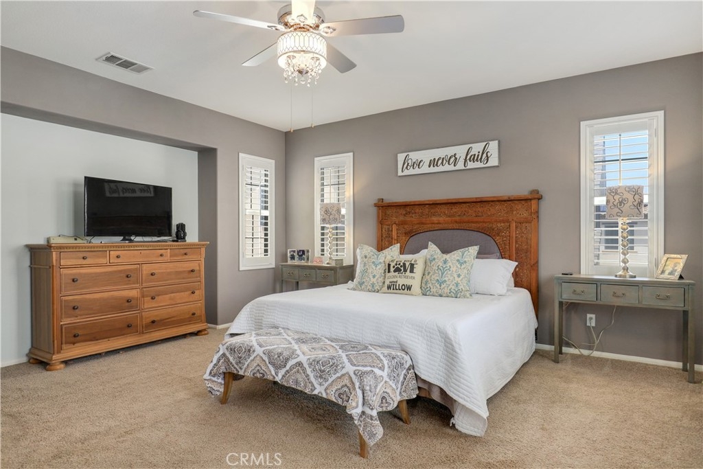 Welcome to this immaculately maintained, move-in ready home, in the highly desirable community of Wolf Creek. This gorgeous home features 3 bedrooms, 2.5 bathrooms, Great open floor plan, and a 2 car garage, Enter into the formal living and dining area complete with plantation shutters throughout, wood flooring and designer paint. Continue into the upgraded kitchen with granite counter tops, upgraded backsplash, stainless steel appliances, and ample storage. The kitchen is open to the family room and has a great breakfast bar. The cozy family room is filled with lots of natural light, and has access to a charming patio. The Patio is just the right size, for BBQ's, Relaxing with a glass of Wine, and enough room for pets. Downstairs, there is a half bath on the first floor for convenience, and upstairs features a Jack & Jill bathroom nestled between two spacious secondary bedrooms. Upstairs also features high-end carpet, and an over-sized owners' suite with a barn door, double sinks, and walk-in closet. There is an upstairs laundry room with a sink and lots of storage. All bathrooms and laundry rooms have large upgraded tile flooring too! Wolf Creek offers some of the best amenities, including access to two pools! This is a great community in a perfect location, close to restaurants, shopping, entertainment, schools, zoned for Great Oak High School, and easy access to the 15fwy! Perfect for commuters. Schedule your private showing before it's gone!