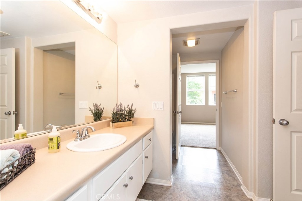 Ready-to-move-in one bedroom unit for sale in south Temecula at the community in Temecula Creek Village. The condo features recessed lighting, upgraded laminate floors, luxury vinyl bathroom tile, refinished cabinets, brand new carpet and fresh paint! The bright white kitchen was recently refinished in white and offers neutral countertops. It is conveniently open to the family room which makes it easier to entertain. The family room is accented with gray neutral paint and has large patio doors that open to the covered balcony which makes indoor/outdoor entertaining a breeze! The bright master bedroom offers accessibility to the balcony and has its own private bathroom which includes a large single vanity, tub/shower combo, and a huge walk-in closet! The large balcony overlooks the quiet and serene, tree-lined community sidewalk. This condo also comes with a covered carport, storage closet in the breezeway, and great community amenities; including a community pool/spa, gym, sauna, racquetball court, tot lot, walking trails and much more! This unit is within walking distance to restaurants and just minutes from shopping centers, entertaining, Pechanga Casino, Temecula Wine Country, Old Town Temecula, Temecula Valley Hospital, and I-15 freeway (perfect for San Diego county commuters)! It is also located in the prestigious and highly sought-after Temecula Unified School District!