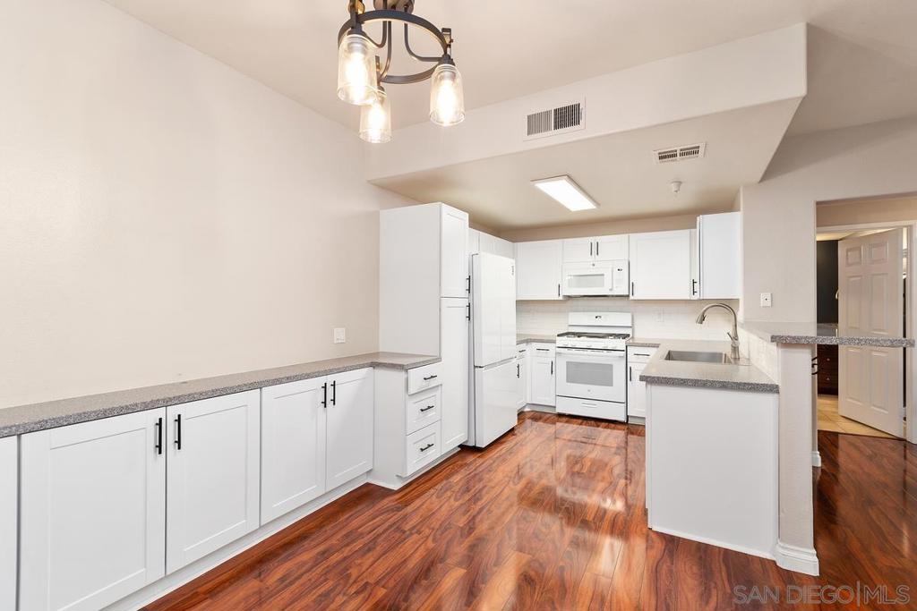 Super clean end unit with a BRAND NEW kitchen and gleaming wood flooring. You will love the floorplan that connects the living room, kitchen eat in bar top and private balcony. You won’t need to do anything because it's ready! In unit full size laundry and all appliances come with it! This amazing GATED community has a pool / spa, fitness center and gathering areas. Open space with walking trails nearby! All of your favorite restaurants are nearby. Come see this one today! Equipment: Dryer, Range/Oven, Washer Sewer: Public Sewer Topography: GSL