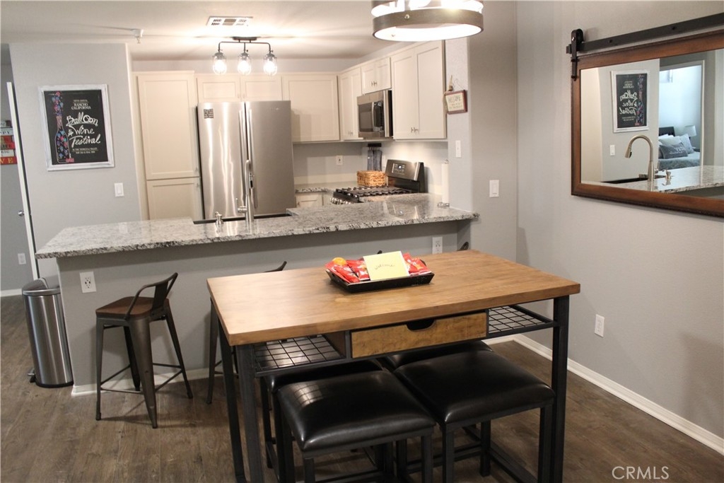 Perfect INVESTMENT or "live in" property. AN ABSOLUTE Completely remodeled GEM! Upgraded in 2021 located in Temecula Creek Village. Property is a private, top floor, back end unit overlooking green belt, with 1 common wall, AND A GARAGE. ALL New high-end flooring throughout, kitchen features farm sink, new cabinets, granite counter tops, energy efficient appliances. Open concept living room and kitchen. This is a 2 bedroom, 2 bath, 1,101 square feet beauty. Both rooms have private separate access doors to the balcony, and a private bathroom. A pool, spa, fitness center, club house, and play grounds are all in community at your convenience. You're minutes from the Temecula Valley Hospital, shopping, restaurants, Old Town, freeway entrance and more! Landscaping, Roof and outside Maintenance is all covered with the LOW HOA. Just take a look at the photos, this unit WILL NOT LAST. Hurry up, book your appointment through Showingtime and write your best offer. Equipment: Dryer, Washer. Furniture can be purchased outside of escrow. The home is currently being used as a corporate (30 days or more) rental and has a proven rental record. Owner is listing BROKER/AGENT