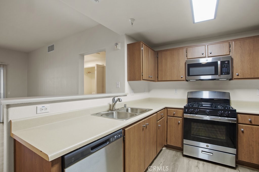 Home ownership awaits your consideration of this renovated main level 1 bedroom, 1 bath condominium located within the highly desirable community of Temecula Creek Village. Light paint tones attract the natural light which streams through Westerly facing windows and through its large sliding glass door, allowing gentle breezes to flow throughout. Luxury vinyl wood plank flooring with neutral tones has been laid throughout, enhancing the spacious feeling of this unit’s floorplan, further accentuated by 3” wood floor moulding creating the feel of style and elegance. New GE appliances and a Samsung side-by-side counter depth refrigerator, all in stainless steel, have been installed and are ready for use by their new owner. The kitchen layout with its wood-stained cabinetry and countertop space allows you to move around efficiently as you cook your favorite family meals, with easy access to serve on the breakfast bar or adjoining dining area. The living room area is spacious and opens onto the private porch area allowing the smells of Springtime to come in as you enjoy conversations with family and friends, or the quiet you want to read that favorite book or binge watch that TV show you heard about. The bedroom is nice sized and has its own private door leading to this private porch area. What a perfect outdoor setting to enjoy your favorite beverage or meal. The bathroom vanity area is large and can be discreetly separated from the private bedroom area by a pocket door. The walk-in closet is also large and easily accommodates the most meticulous of wardrobes. Your laundry area is inside, located in a separate hallway, and fully screened by folding closet doors. The washer and dryer will convey with the sale of this adorable unit. Within Temecula Creek Village, the location of this unit is in one of the quietest back areas of the community away from the hustle and bustle of Temecula Parkway, with its own carport parking space directly located in front of the unit itself. Additional parking for another vehicle can be obtained in the larger parking area also located directly in front of the unit. Temecula Creek Village offers a pool, gym and clubhouse, located within the Temecula Unified School District, and is close to major medical, retail, public transportation, restaurants, I-15 Freeway, Pechanga Casino, and the Temecula Wine Country. This is an amazing opportunity to own in one of the best areas of South Temecula!