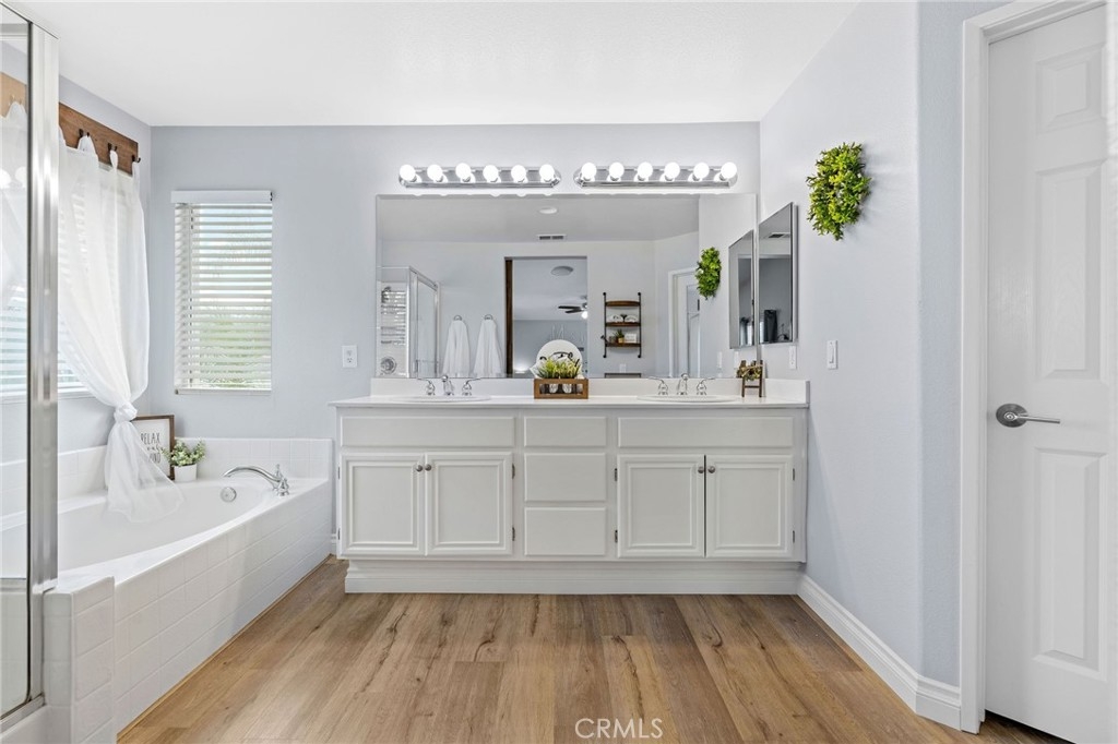 Amazing home in the highly sought after South Temecula location. This spacious home is nestled in a Cul-de-Sac in the gated community of Vail Creek. As you walk in the front door, this home will wow you. Luxurious 4 bedroom recently remodeled and updated. New flooring upstairs and down. Kitchen has granite counters, custom extended island, subway tile backspash, new light fixtures, and a gorgeous barn door for your walk in pantry. Custom built in bar for entertaining. All bedrooms are upstairs and come with ceiling fans. Primary bedroom is spacious and has a custom barn door as well as sitting area. Epoxy flooring in 2 car garage. This home is ready to move in and absolutely turnkey. Location is close to shopping, parks, Restaurants, Pechanga, wineries, hospitals and award winning Temecula School District.