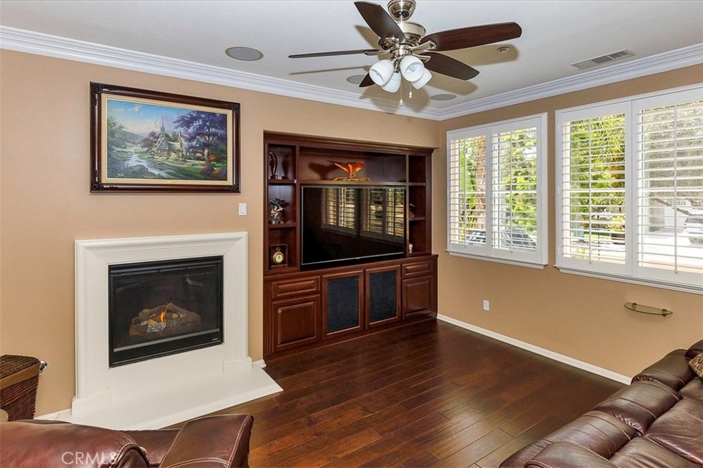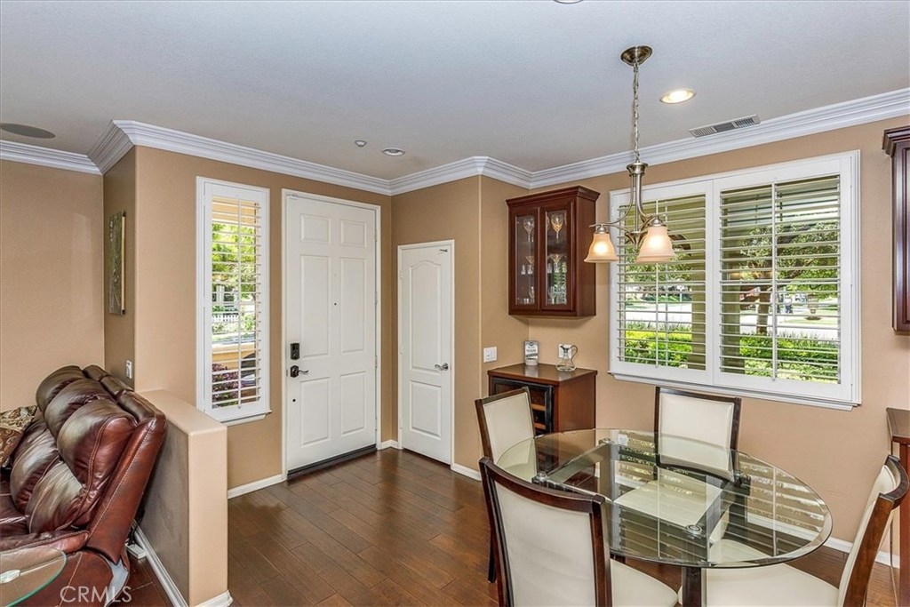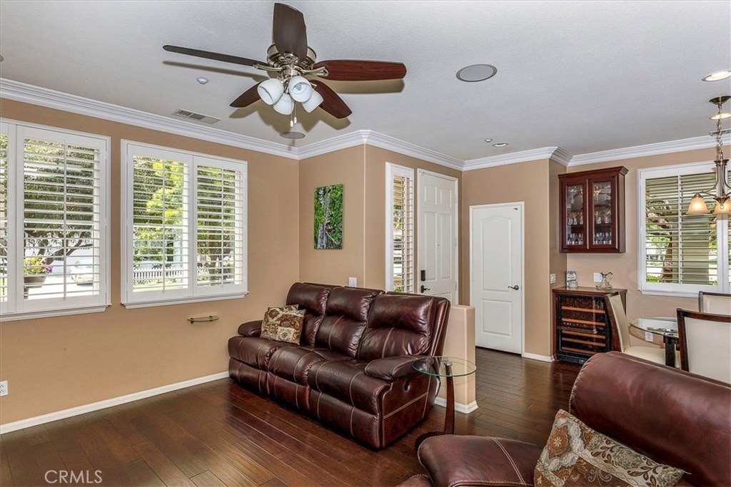 Highly upgraded Temecula Townhome in desirable Harveston. This corner unit has a wrap around porch and is situated across from the Lake House. This Townhome is surrounded with green space that provides a park like setting from your covered patio. Hardwood floors, ceiling fans in every room, In-ceiling surround sound in the family room and loft are just a few of the many upgrades in this Townhome. You will also enjoy custom-built Cabinetry throughout the Family Room and Master Bedroom. Downstairs has an open floor plan with plantation shutters, fireplace in the family room and the Kitchen features Granite counter tops, stainless steel appliances a pantry and custom pull out drawers. Attached 2 car garage provides direct access to the Indoor laundry room, ½ Bath and kitchen. Upstairs features a large loft area that separates the master bedroom from the other two bedrooms and third bathroom. Master bathroom has dual sinks with granite counter tops and a walk-in closet. Harveston is a beautiful Master Planned Lake Community, conveniently located minutes from the I-15 & 215 freeways, the Promenade Mall and Temecula wineries. Lakehouse offers private facilities for residents, a Jr. Olympic Pool, Spa, Splash Park, and Clubhouse- all overlooking scenic Harveston lake.