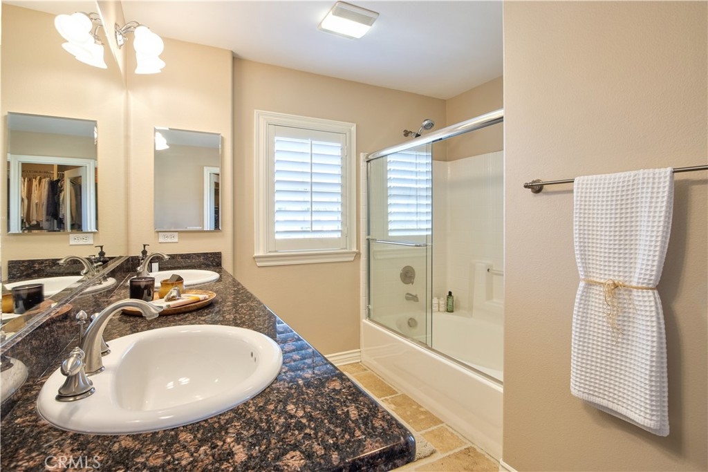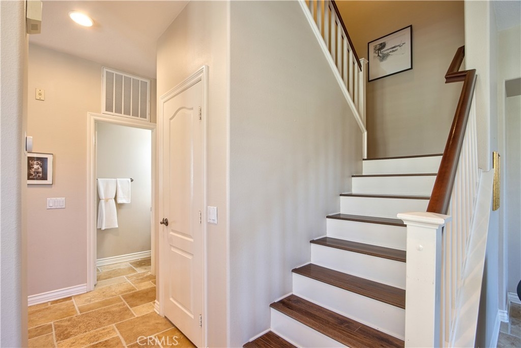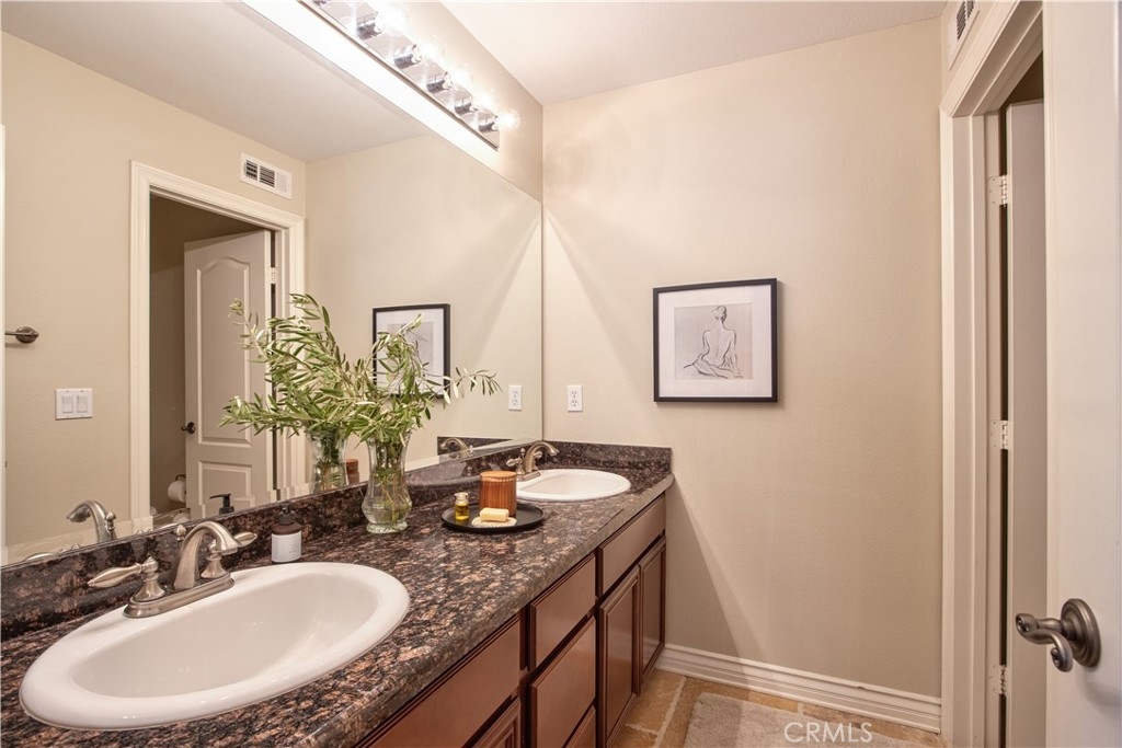 Exquisite Savannah at Harveston Residence! This stunning corner-lot home is flooded with natural light from its abundance of windows. Offering a luxurious living experience, this meticulously upgraded property features 3 bedrooms plus a loft, 2 1/2 bathrooms, and a host of desirable improvements. Inside, you'll find plantation shutters, tile, and laminate wood flooring throughout, ensuring elegance and easy maintenance without a trace of carpet. The kitchen is a chef's dream with granite slab counters, stainless steel appliances, upgraded cabinets, and a generously sized walk-in pantry. The downstairs laundry room provides ample storage with upper cabinets and a small pantry. Upstairs, discover three bedrooms and a loft with a built-in desk and shelving, ideal for a home office or study area. The primary bedroom and en-suite bathroom are beautifully appointed with granite counters, upgraded cabinets, and a spacious walk-in closet. Outside, the charming front courtyard offers a serene spot to relax and enjoy the gentle breezes. The two-car garage features epoxy floors for a clean and polished look. Conveniently located just a short stroll from the lake and clubhouse, this property offers more than just a home; it provides a lifestyle of leisure and comfort.