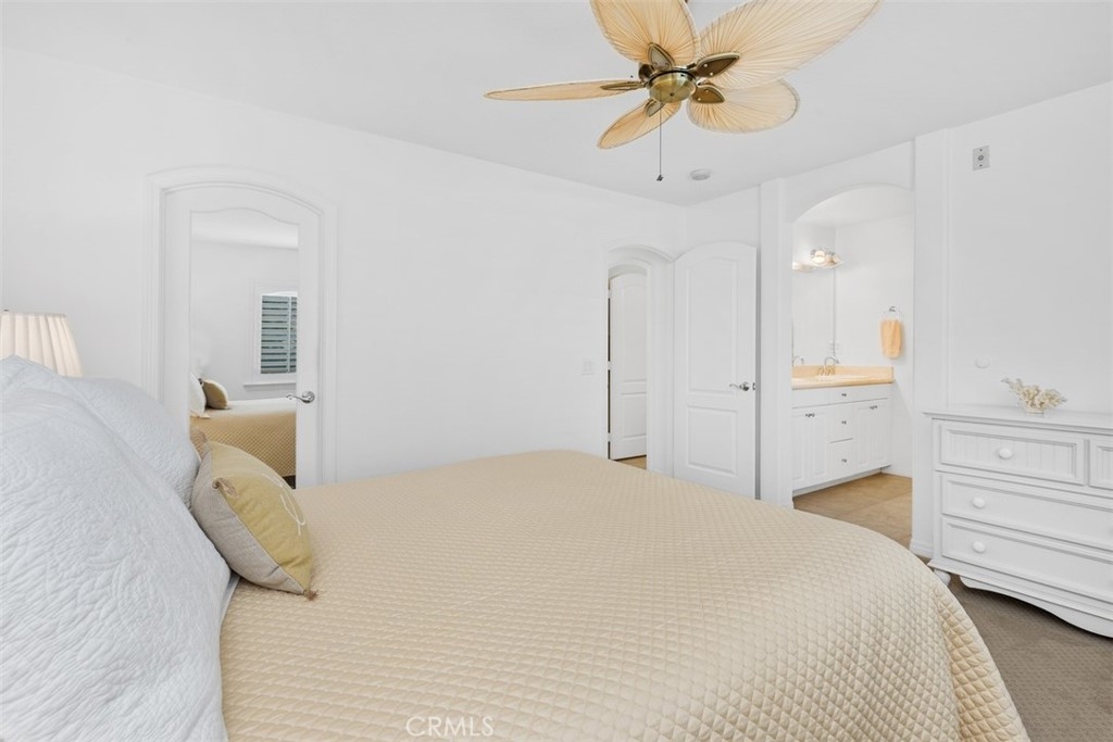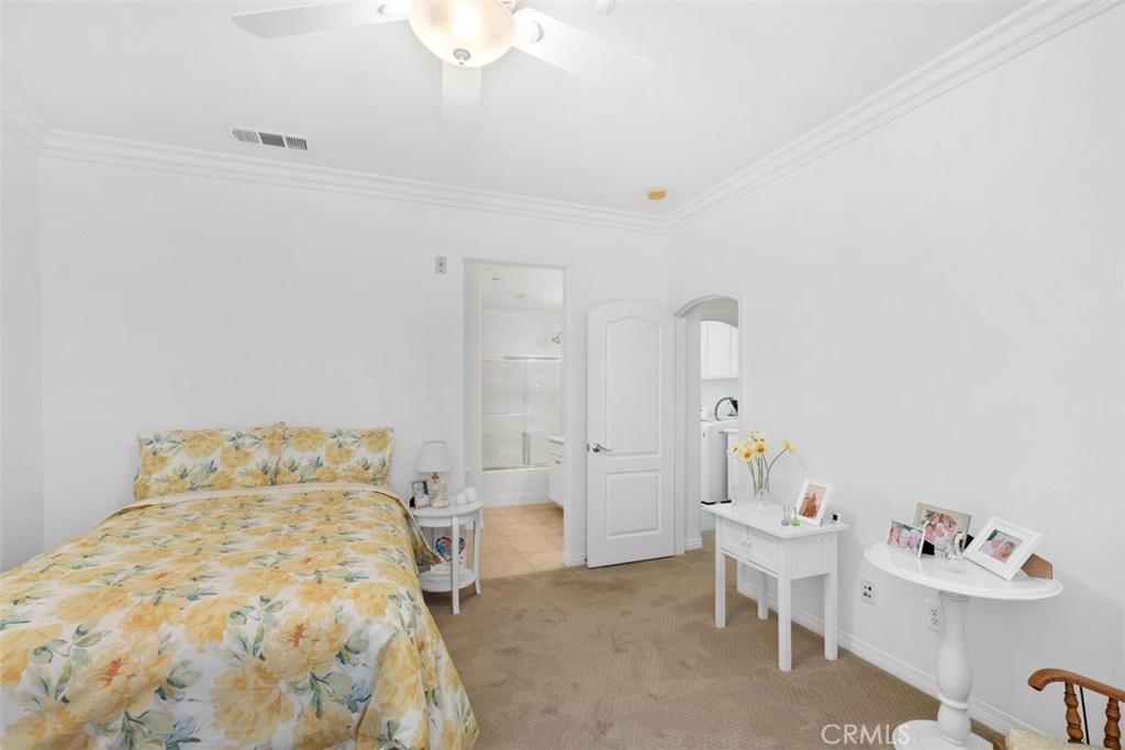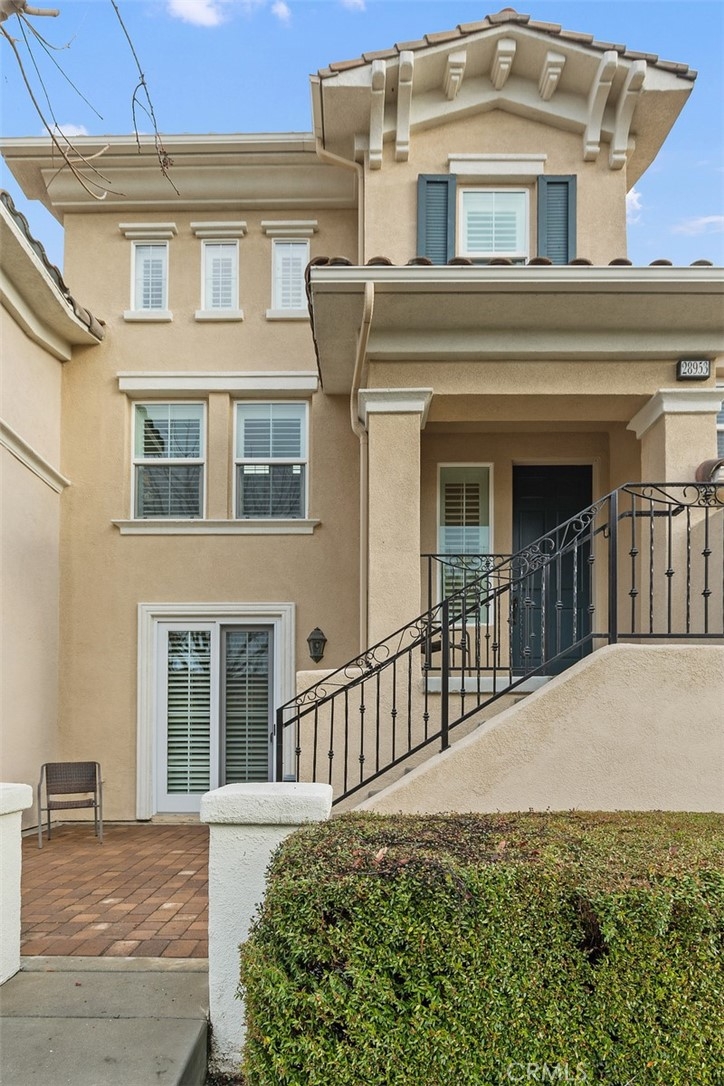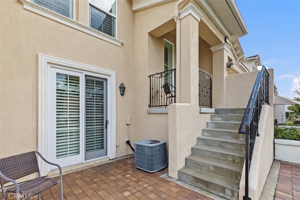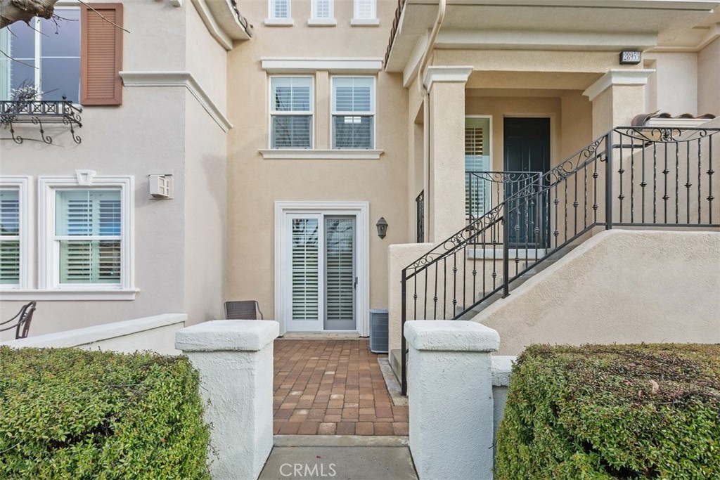 This stunning turnkey and upgraded dual master townhouse is located close to the lake and clubhouse in the desirable Harveston Lake community. On the main level the open floor plan includes the family room, dining area, kitchen, powder room and large master suite with a step-in shower and walk in closet with a dual mirrored door. There is a 2nd very private and spacious master bedroom with a full bathroom and walk in closet on the lower level that has its own access sliding glass door that opens into the front courtyard. On the 3rd level you will enjoy a good size open loft area, perfect for an office, exercise room or a study space. You will love the high ceilings and natural light throughout the home. Upgrades include plantation shutters throughout, custom arched door frames, crown molding, newer carpet, ceiling fans and the inside of the home was freshly painted within the last two years. The kitchen features white cabinets including custom glass cabinet doors, granite countertops, plus the dishwasher, garbage disposal and faucets have all been replaced. Other upgrades include quartz counter tops in the powder room and downstairs counter top, Smart thermostat and lock sets plus a replaced water heater. Lots of storage cabinets and closets throughout. The separate laundry room is downstairs and has extra storage cabinets.There is a two car garage. HARVESTON offers so much: a 17-acre Lake to enjoy walking around, a public sports park with lighted sports fields, picnic area, playground and walkways. It features a lovely clubhouse and grounds where the HOA hosts special events throughout the year for the residents.There is also a swimming pool, spa and splash park. Harveston is close to schools, shops, restaurants and the freeways. A great place to call home!!