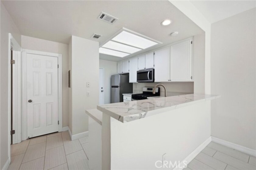 Have you been searching for that completely remodeled, move in ready condo? Well, look no more. This 2-bedroom condo has everything you have been wanting from, beautiful newly installed custom tile throughout the lower level including the living area with gas fireplace framed in light colored quartz, family dining area, breakfast bar and kitchen have been upgraded with quartz counter tops, new dishwasher, microwave, gas oven, refrigerator, new farm sink, freshly painted white cabinets and upgraded lighting features. There is plenty of storge with 2 lower-level closets you can use one for a pantry. Lower bath has new vanity, lighting features and much more. All new baseboards throughout the condo. Upper level has nicely sized guest room, mirrored wardrobe doors, ceiling fan and newly installed carpet. Guest bath has completely been updated, new shower/tub combo, vanity, new tile flooring, mirror and lighting features. Main bedroom is very spacious with newly installed carpet, large, mirrored wardrobe doors and ceiling fan. Main bath is all new as well with new shower/tub combo, vanity, lighting and flooring. There is a laundry closet with double folding doors and a new washer and dryer. This condo has been completely redone from top to bottom! Attached 2 car garage with epoxy flooring. This unit is bright with lots of natural lighting. The community has sport court, pool and club house. Location is perfect for walking to school, promenade mall and the MSJC campus. Did I mention the private gated front patio area! Get ready to move!