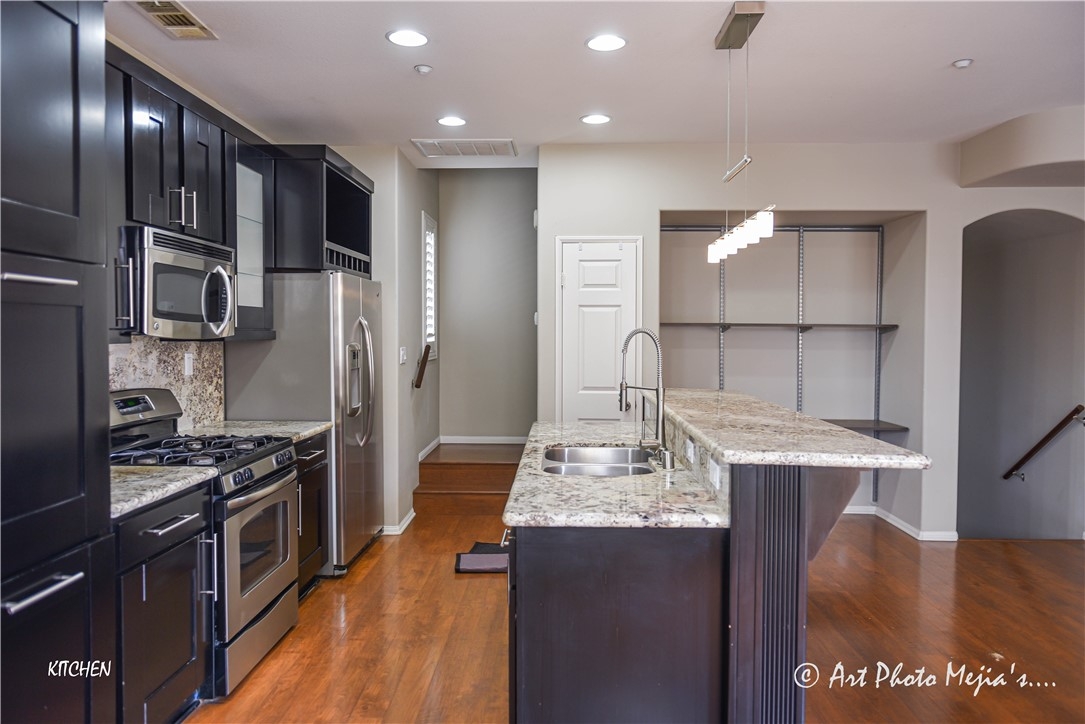 This beautiful, well maintained tri-level condo wont last long! Welcome to South Temecula's quaint and cozy condominium community. Upon entering the home you have easy access to an attached one car garage w/ample storage space. 2nd level features a charming living/family room boasting tons of natural light beaming in w/peek a boo views of the mountains and access to your relaxing patio lounge. Just off of the family room is the well coordinated kitchen & eat in dining room equipped w/ beautiful Granite countertops and upgraded cabinets. The main floor offers recessed lighting & new hardwood floors throughout. Also on this level is a comfortable sized bedroom & personal bath w/shower, very versatile can be a guest room for family & friends or children's bedroom. The 3rd floor features your private master retreat w/bedroom & bath en-suite, bath shower combo w newly tiled walls and granite countertops, dual vanity and water room. Affordable HOA includes community pool/spa, clubhouse, walking trails, BBQ, picnic area & playground. Close to shopping, several golf courses, Highway 15, wine country, Pechanga Casino and Resort, Great Oak High School district.