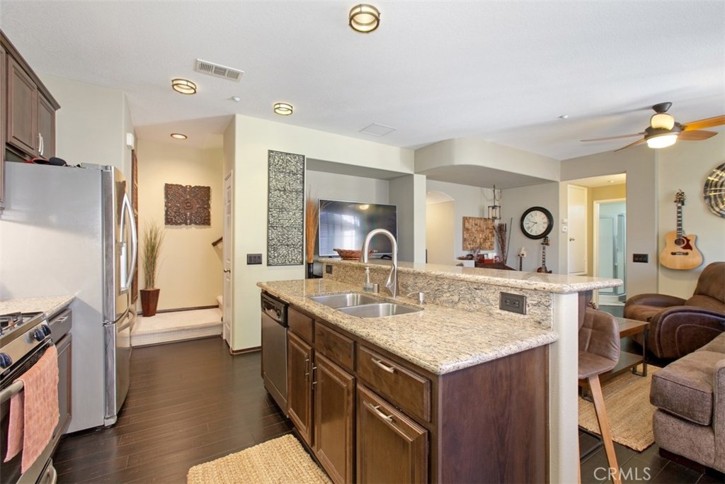 Experience the gated Community of Temecula Lane located in South Temecula, Wolf Creek. Perfect kitchen for entertaining with stainless steel appliances, Island seating with granite countertops. A private balcony attached to the dining area is perfect for grilling your favorite dinner. The new Bamboo flooring highlights the beautiful dark wood cabinets. Enjoy your privacy with the Master Suite located on the top floor. The attached garage has been finished and there is plenty of guest parking located within the community. Your own Private Resort features pool, clubhouse and well kept grounds and walking trails. Walking distance to restaurants, shopping and entertainment at Pechanga.